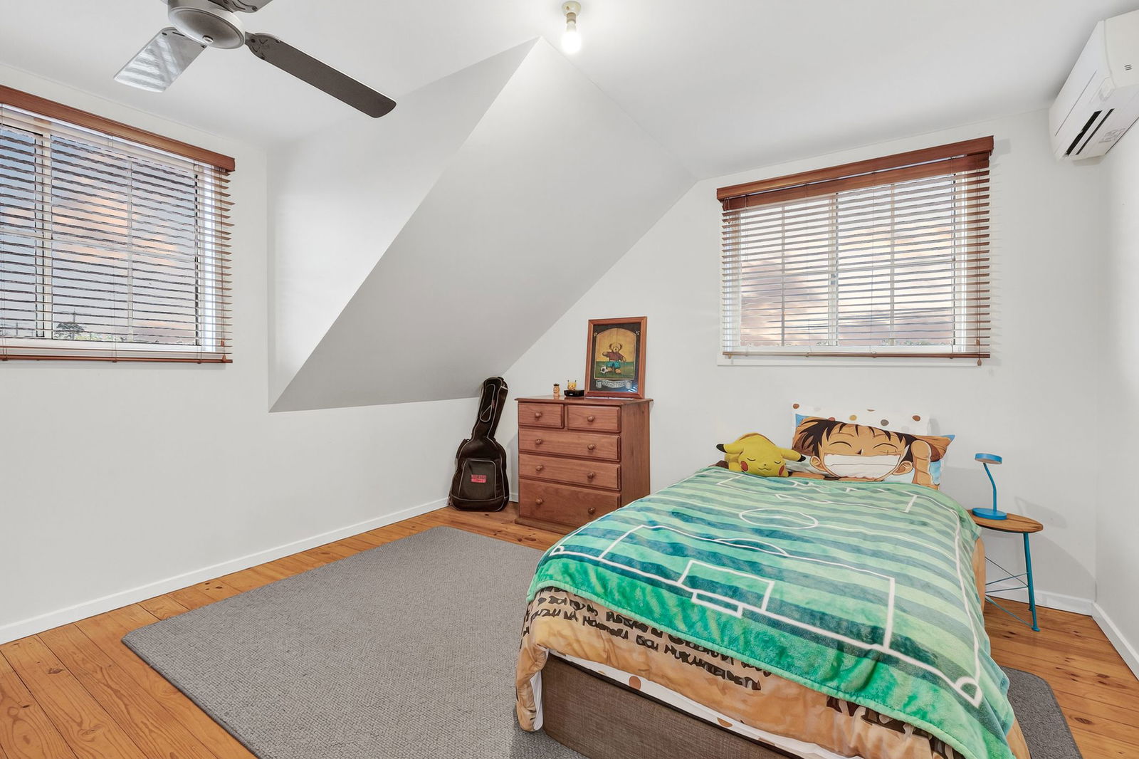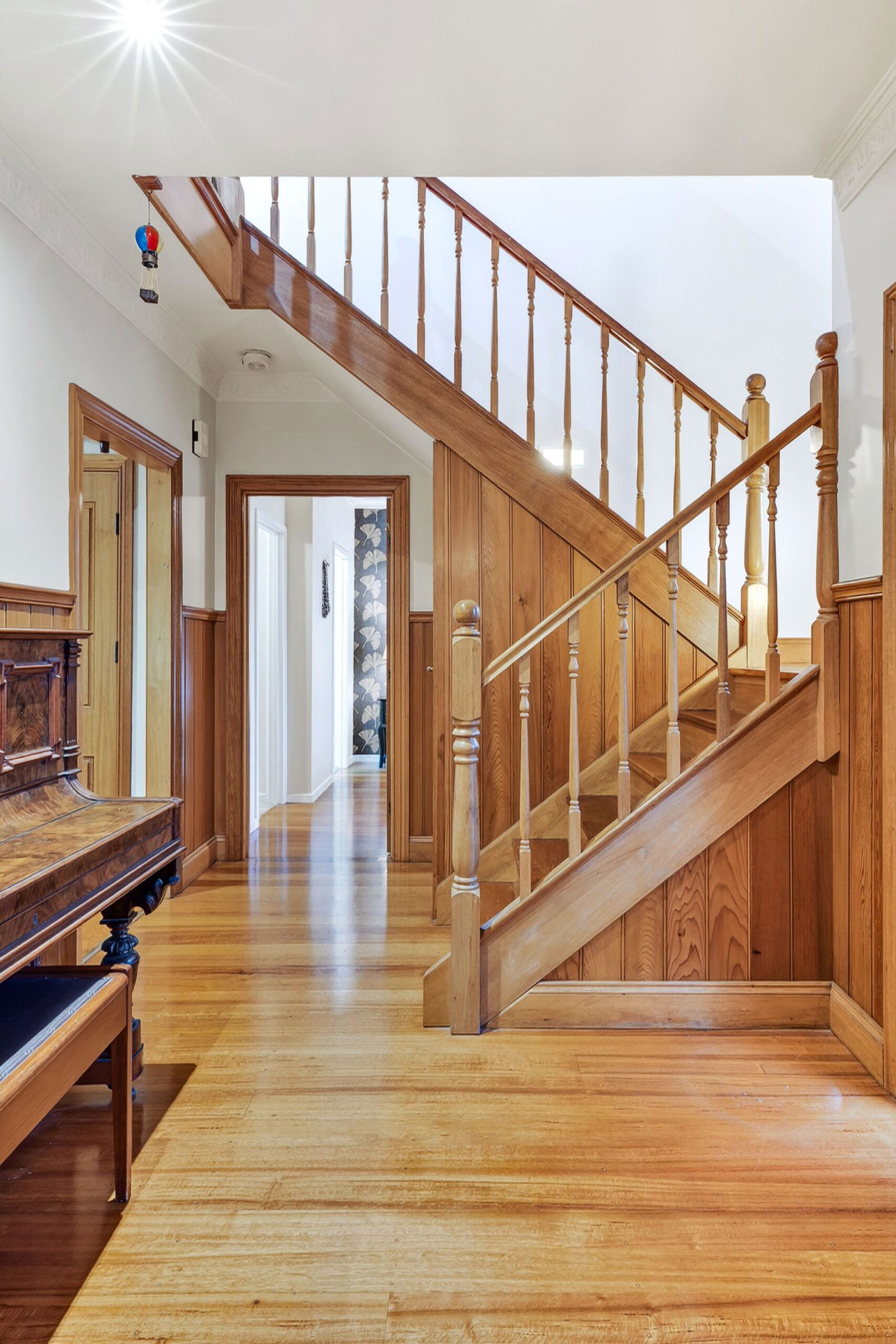 Additional Bedrooms: Two generous first-floor bedrooms, each with solid timber floors, oversized walk-in robes, ceiling fans, and windows with timber venetian blinds.
