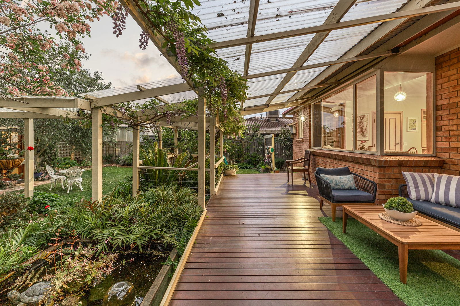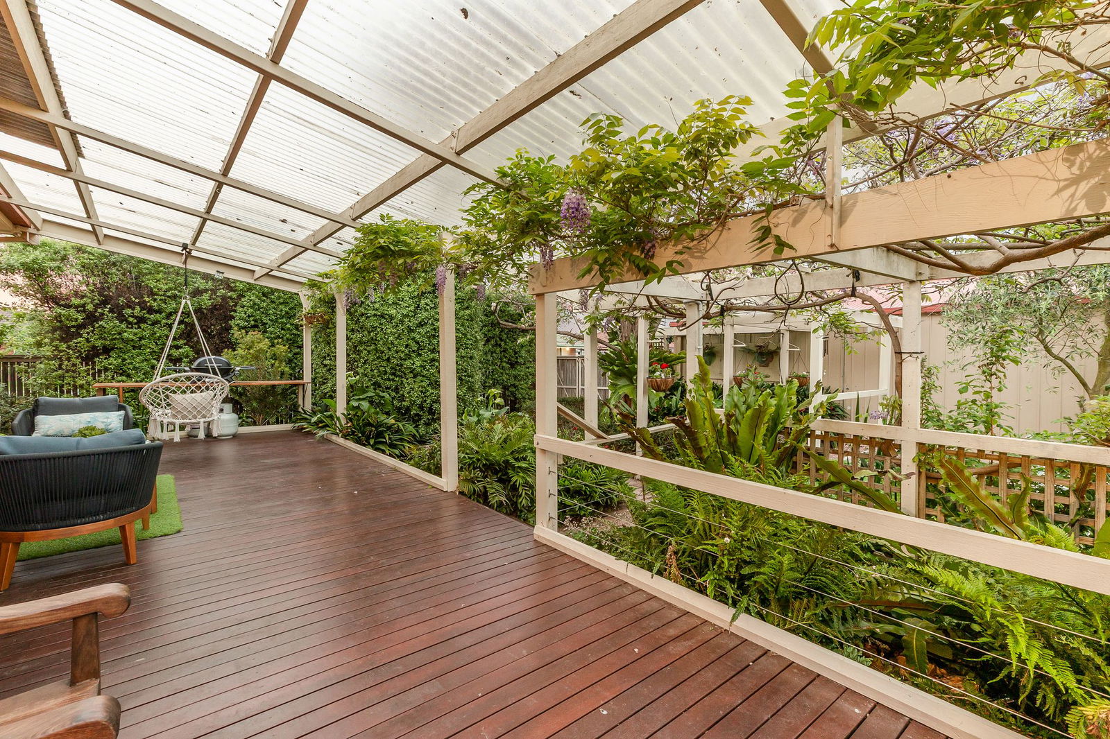 Outside: A covered rear deck extends to lush fernery gardens and a private north-facing grassy space beyond, perfect for the kids. Beautifully hedged and immaculately presented, the 662sqm (approx.) allotment comes complete with a double garage and garden shed.