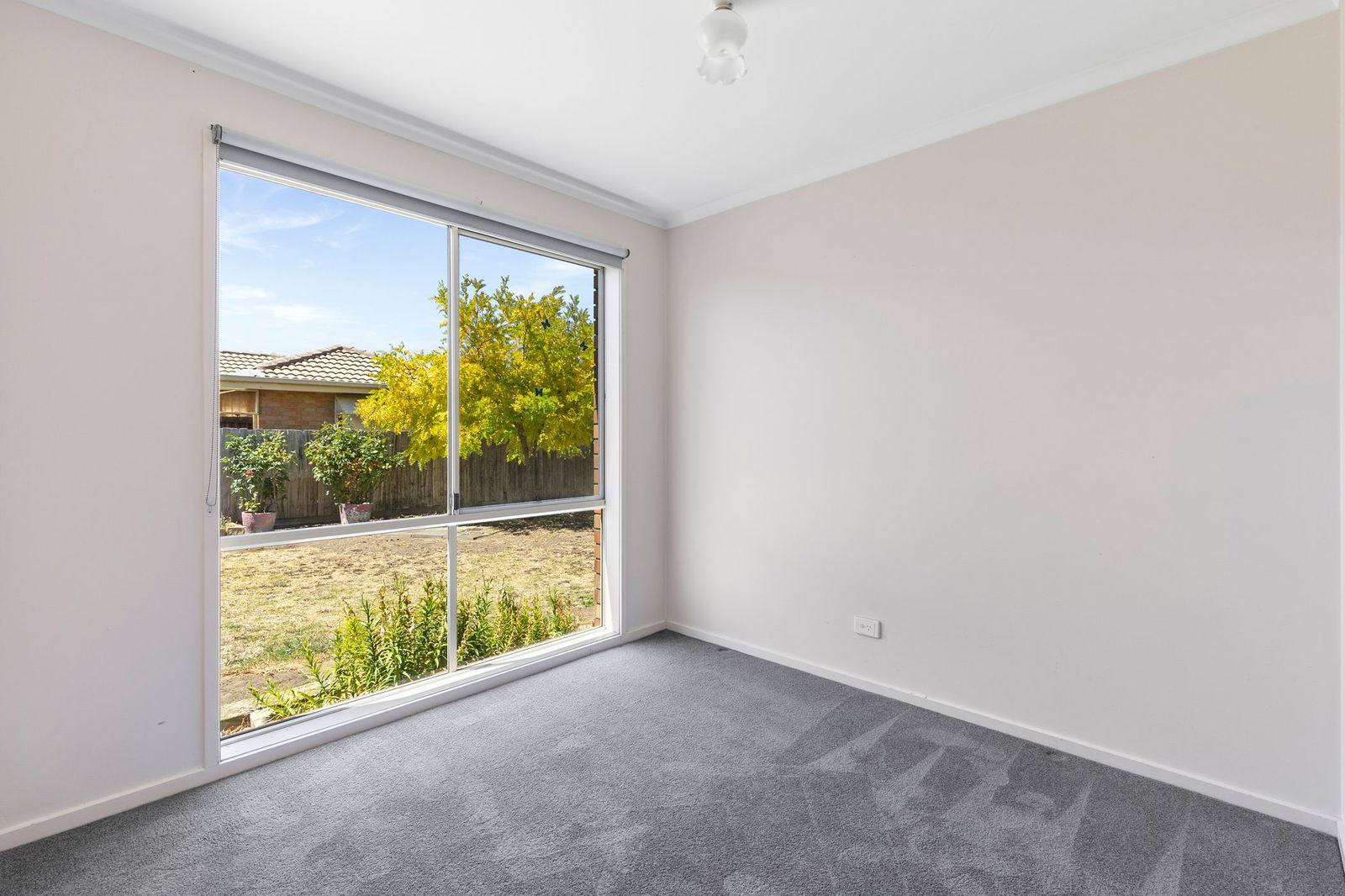 Additional Bedrooms: Two bedrooms sit to the rear, each with plush carpet underfoot, a ceiling-mounted central light, built-in robes, and window with roller blind.