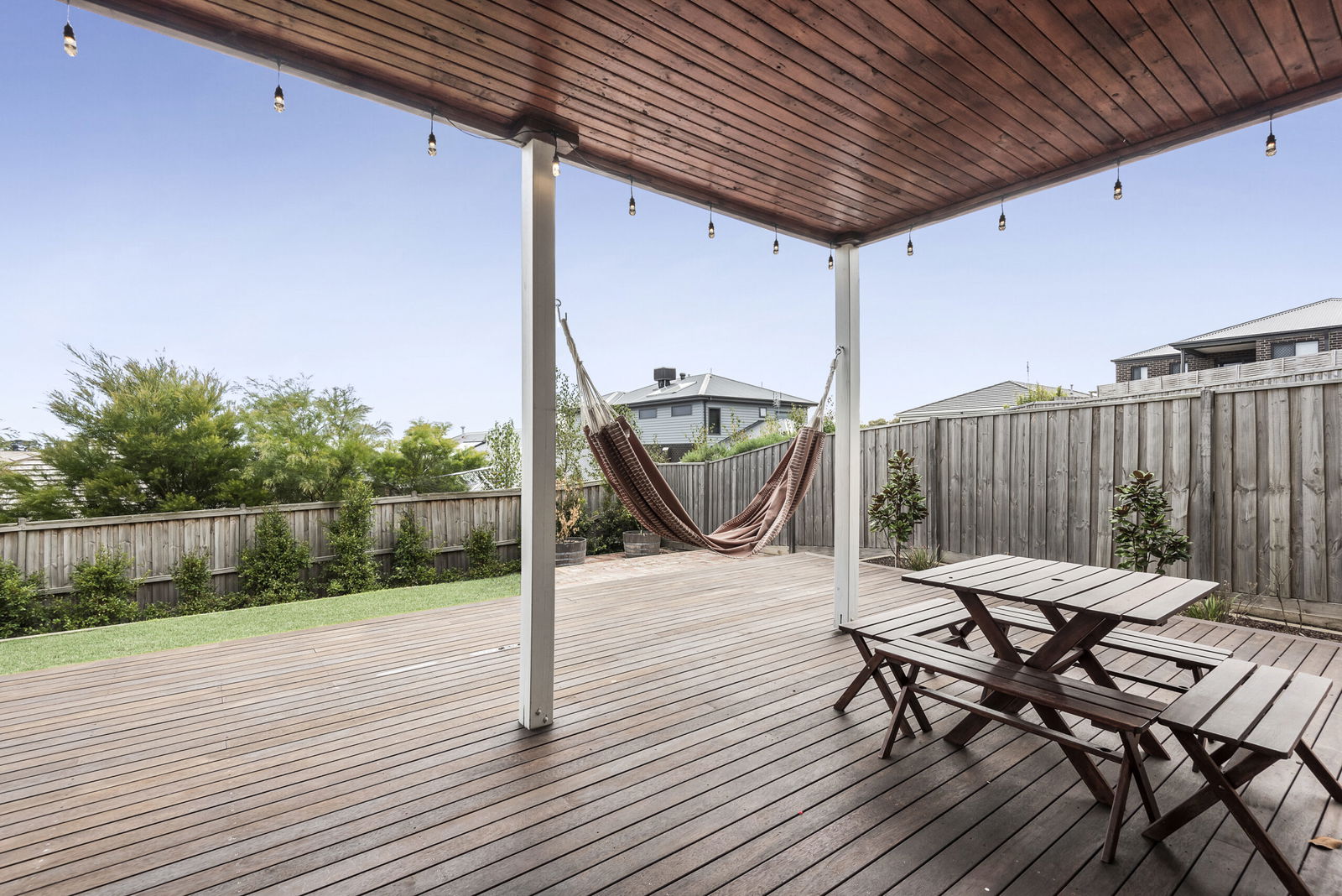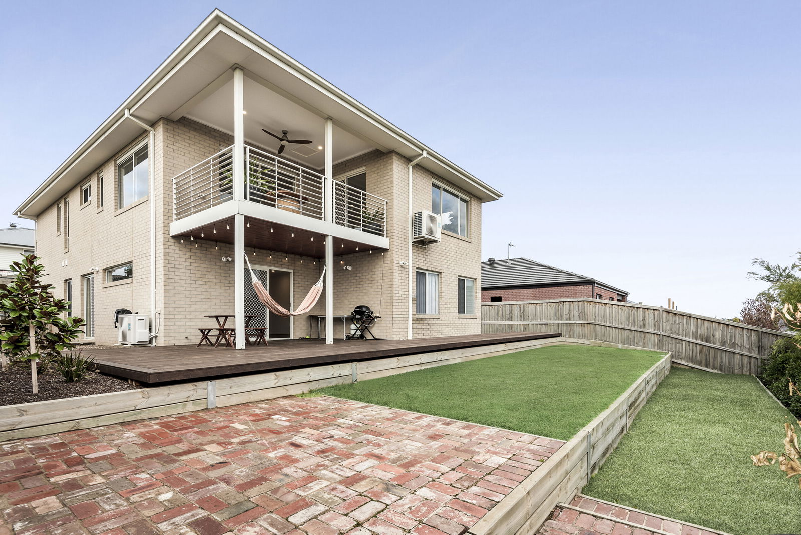 Outside: Beautifully landscaped gardens with a northern orientation offer distinct areas for family enjoyment with a tiered rear yard crowned by a sun-drenched alfresco deck. Recycled red brick landings invite space for a fire pit, while a double garage with an exposed driveway to the front keeps a focus on practicality.
