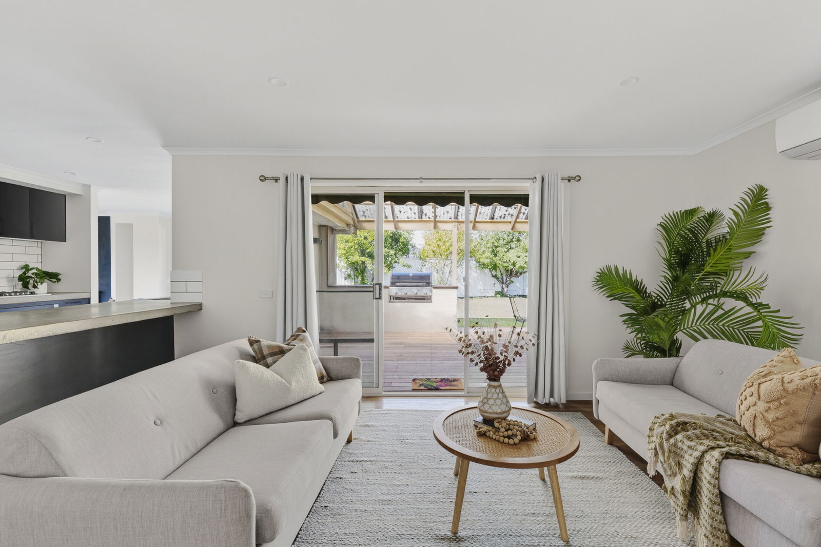 The kitchen’s long concrete benchtop and sleek cabinetry set a contemporary tone, flowing directly to a generous undercover entertaining area with built-in barbecue and views across the sweeping backyard. The main suite opens to its own private deck with outdoor shower, paired with a stylish ensuite, while two additional bedrooms and the main bathroom complete the accommodation. A cosy wood fired lounge creates a winter sanctuary, contrasted by light-filled dining and family spaces that make everyday living feel effortless. With room to move, room to grow and beautiful bayside beaches within easy reach, this address offers an impressive blend of comfort, space and coastal appeal.
