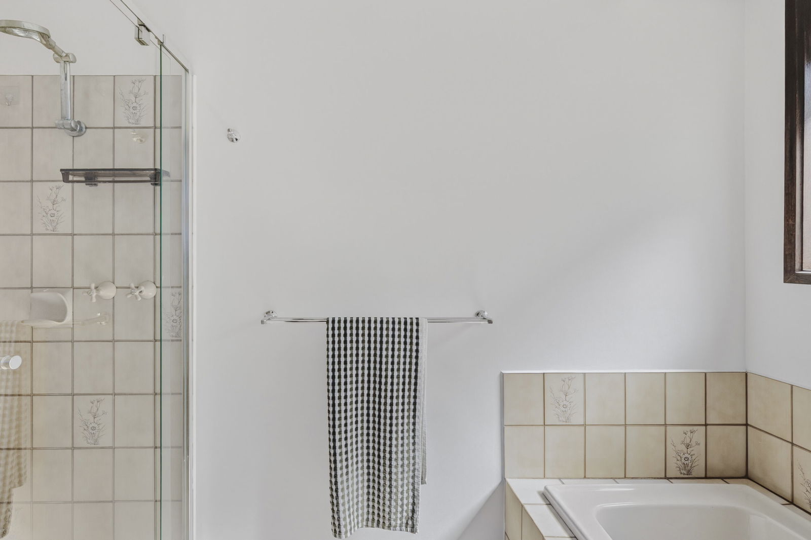 Main Bathroom – Spacious main bathroom in original condition with bath, shower, single vanity and separate toilet