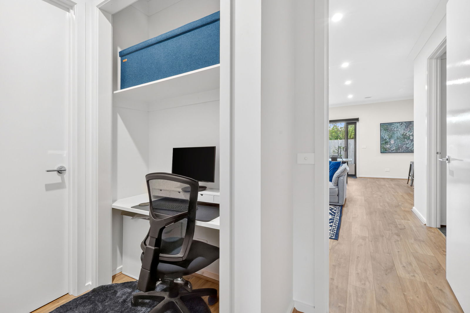 Luxury Inclusions: Split-system heating and cooling, a repurposed linen cupboard now serving as a study nook, custom window finishings throughout, Colorbond roof, and a single garage with internal access.