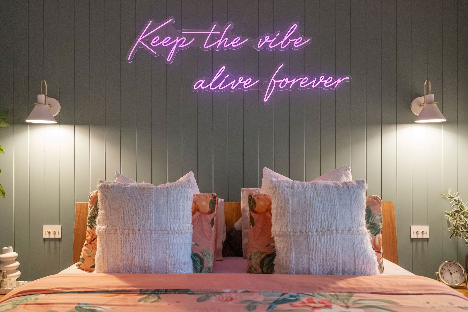 Additional Bedrooms: Three, each featuring carpet, built-in robes, window with roller blind, and a central ceiling fan with light. The first of the three works beautifully as a nursery, with whimsical wallpaper and feature LED lighting at ground level.
