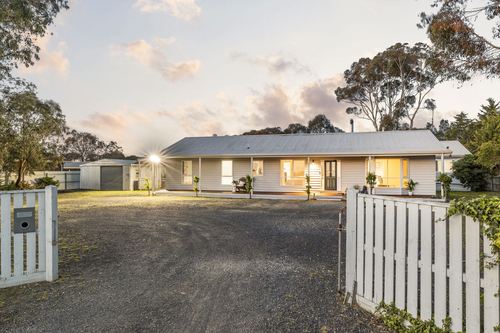 Outside: A front verandah supports a rear alfresco deck, inviting every mode of entertaining, while a tandem carport, an oversized single garage with storage space, a rear shed, chook pen, veggie garden and large cubby house, all sit alongside ample off-street parking, oven garden space, and established fruit trees.