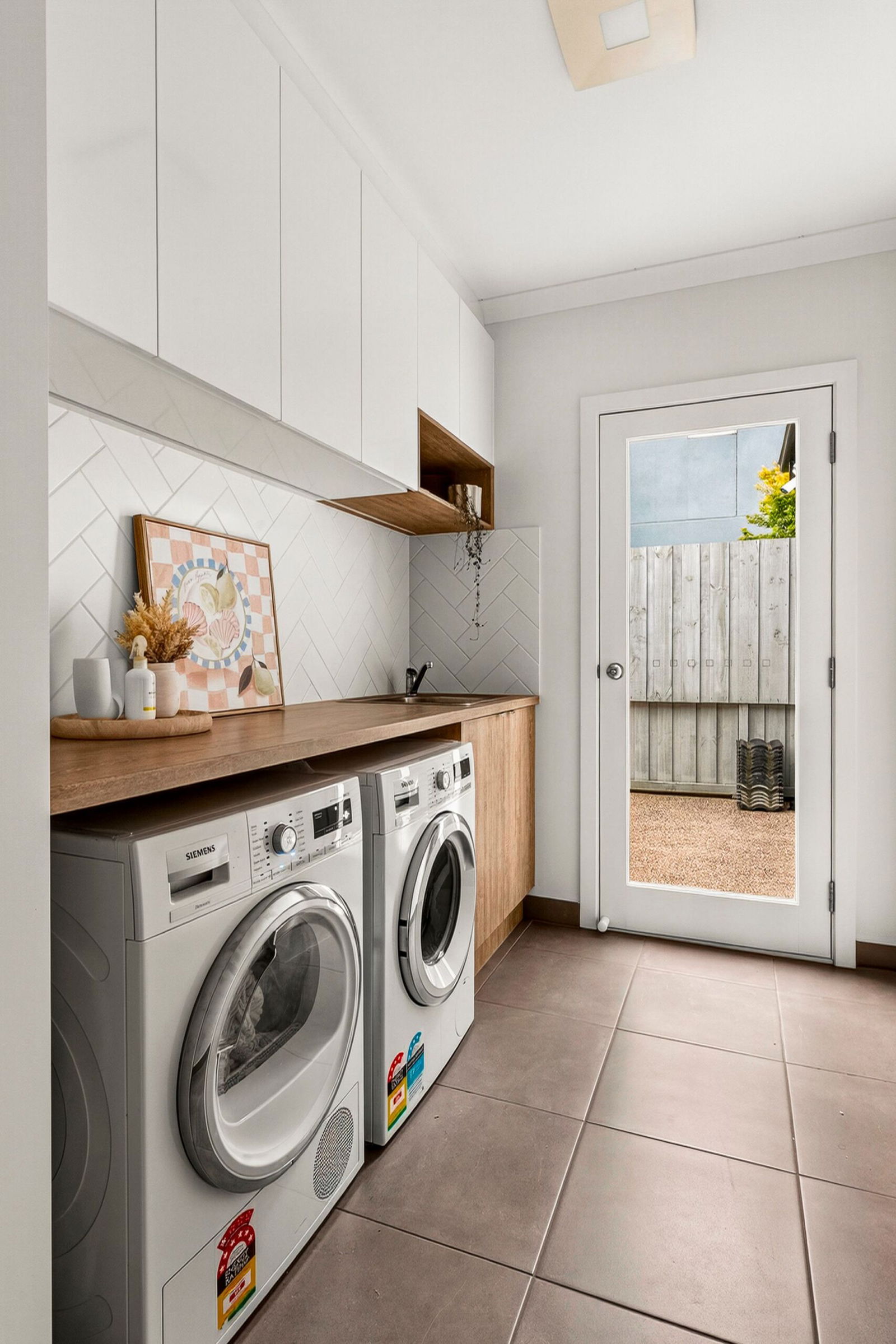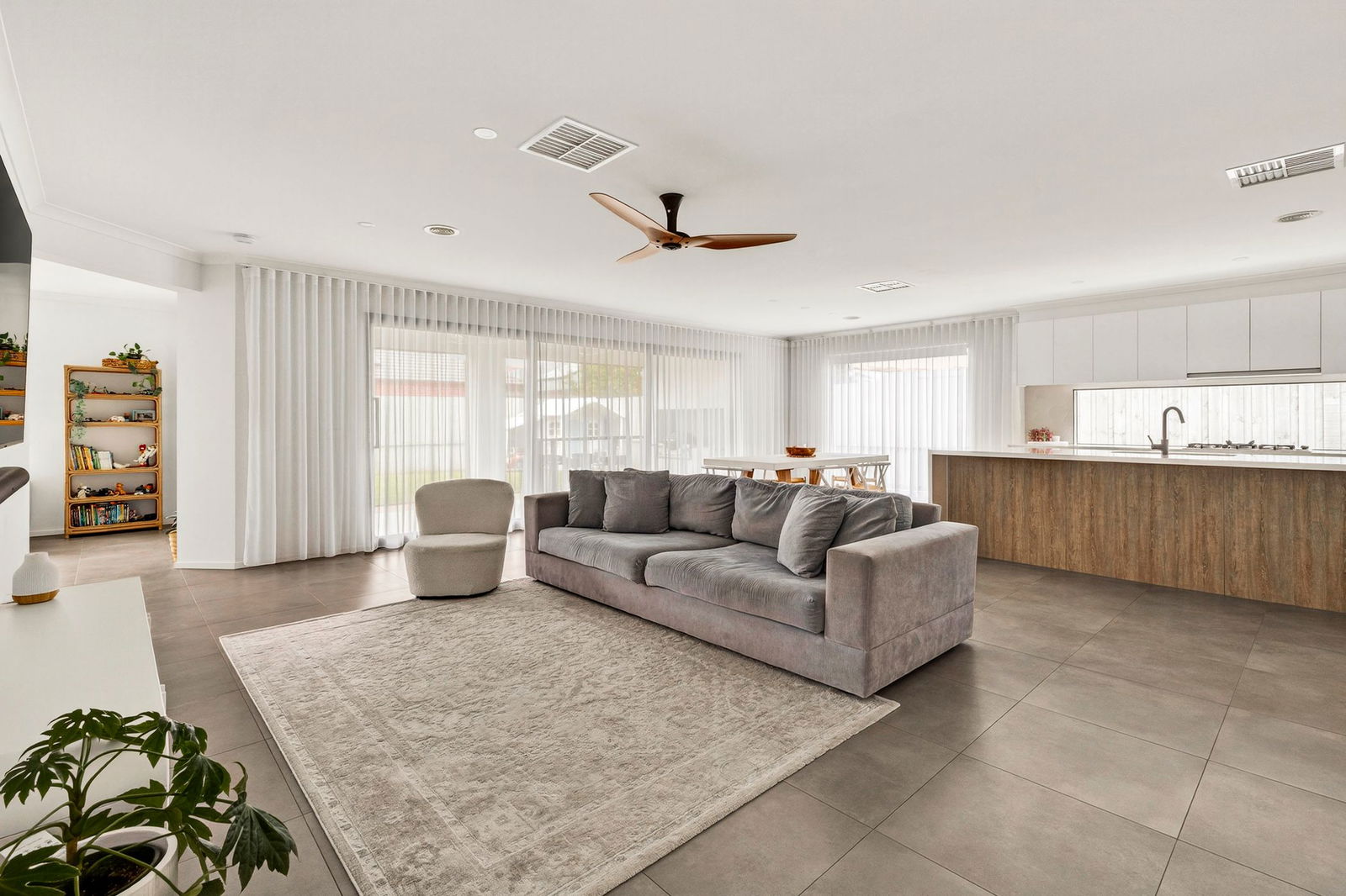Luxury Inclusions: Wide entry hall with motion-sensor lighting, evaporative cooling, two-zone ducted heating, third living zone, laundry with feature strip lighting and exterior access, Club Armstrong access, exposed aggregate driveway, and sensational oversized double garage with epoxy floors, drive-through access, sensor lighting, and built-in storage.