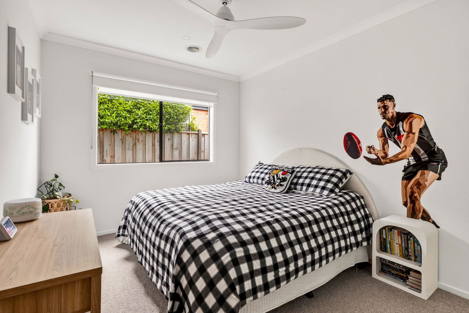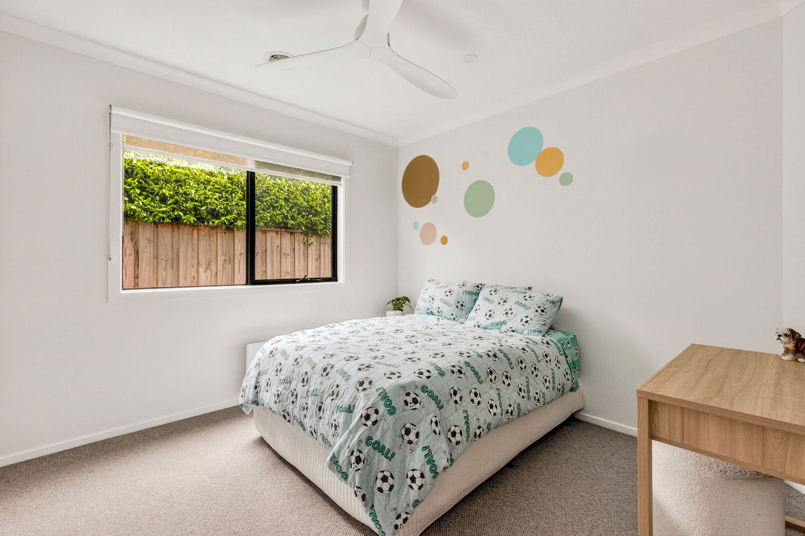 Additional Bedrooms: Concealed beyond a cavity slider, three light-filled bedrooms feature built-in robes, carpet underfoot, a ceiling fan, and window with day/night roller blinds.