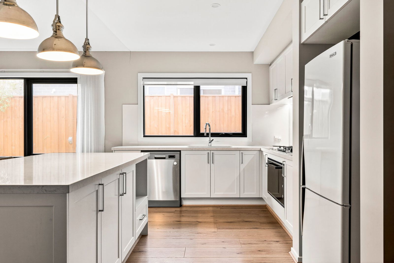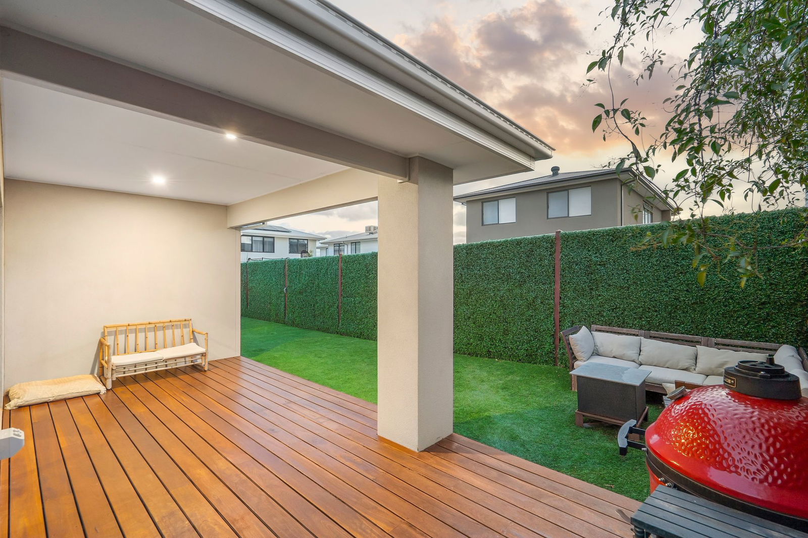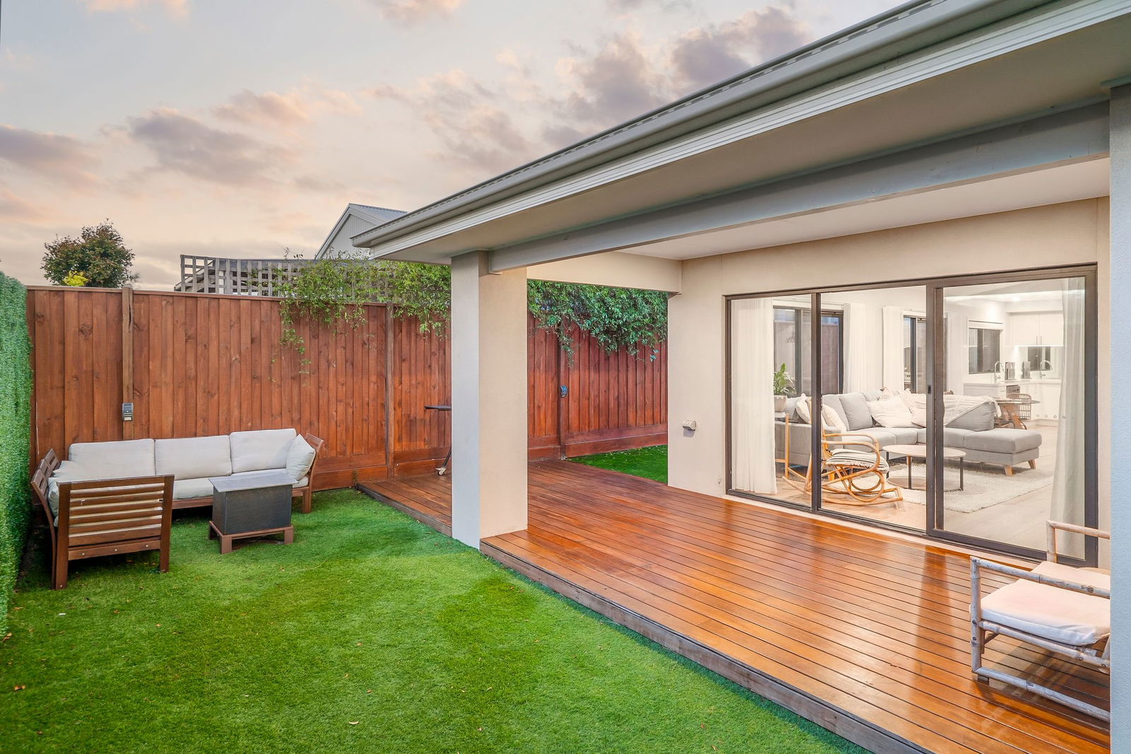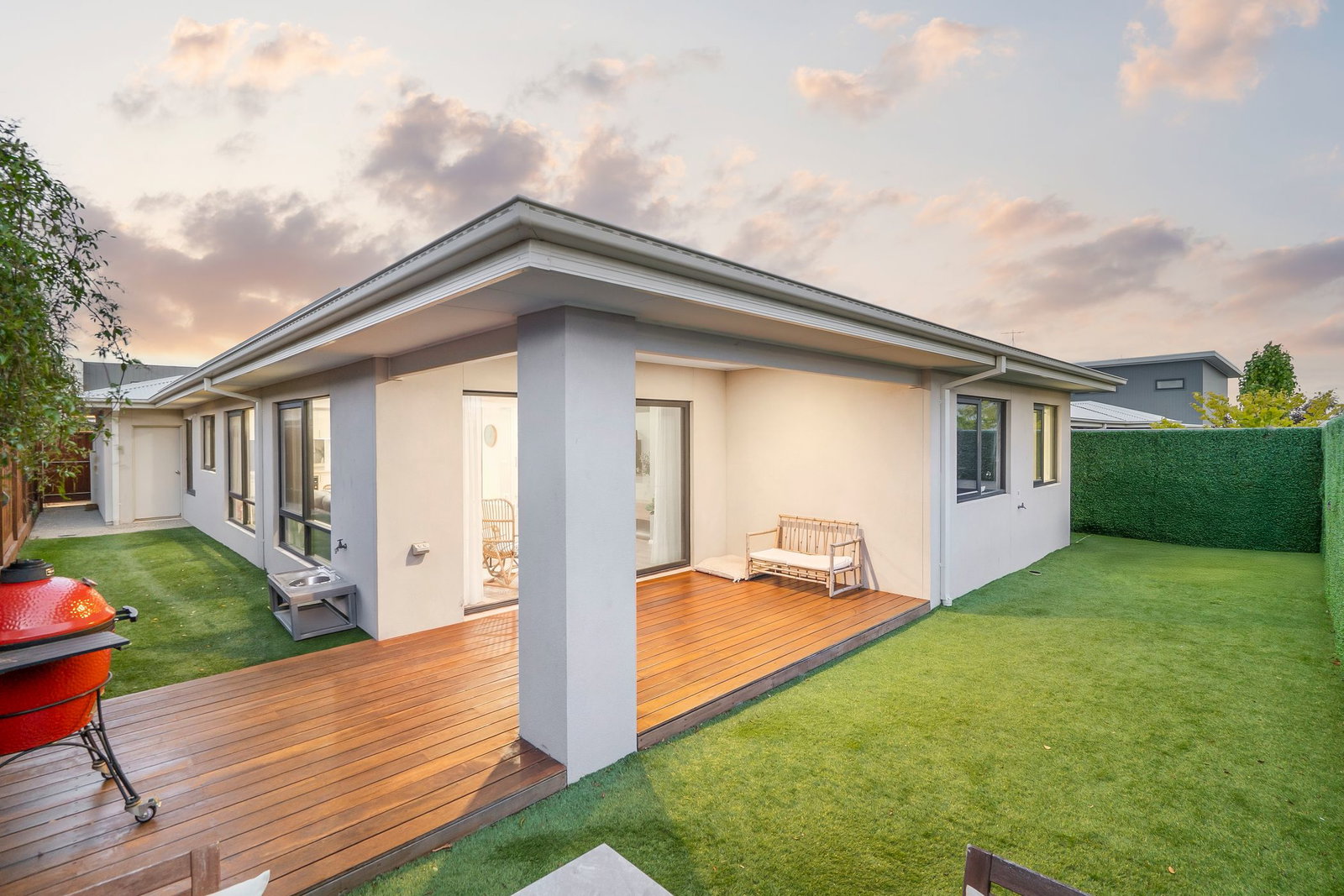 Outside: A covered alfresco is the main focal point, with open mod-grass space for the children to play. Screening lines the rear fences, ensuring this intimate space feels lush and private, while landscaped gardens soften the front facade. Complete with a clothesline and pedestrian access to the double garage.