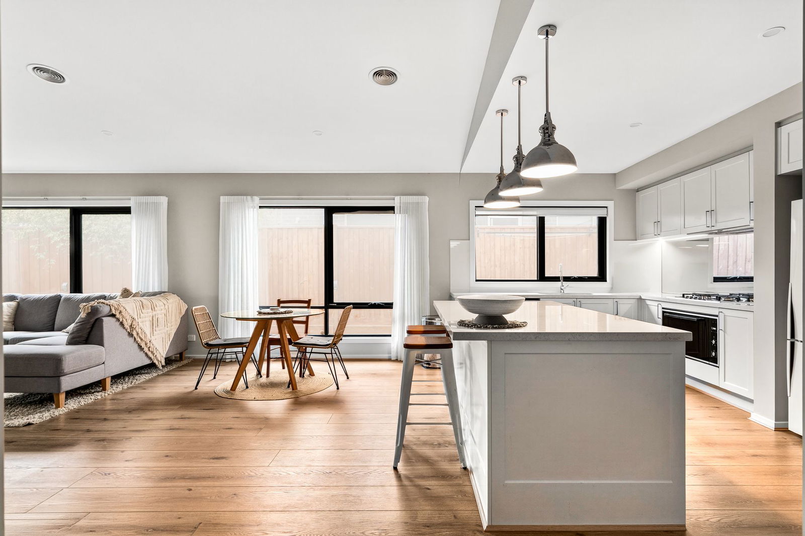 Defined: Generous proportions, architectural ceiling detail, and a flowing open-plan layout come together to create a home filled with light, warmth, and enduring appeal. Carefully selected materials and a thoughtful single-level design ensure spaces feel both inviting and effortlessly functional.