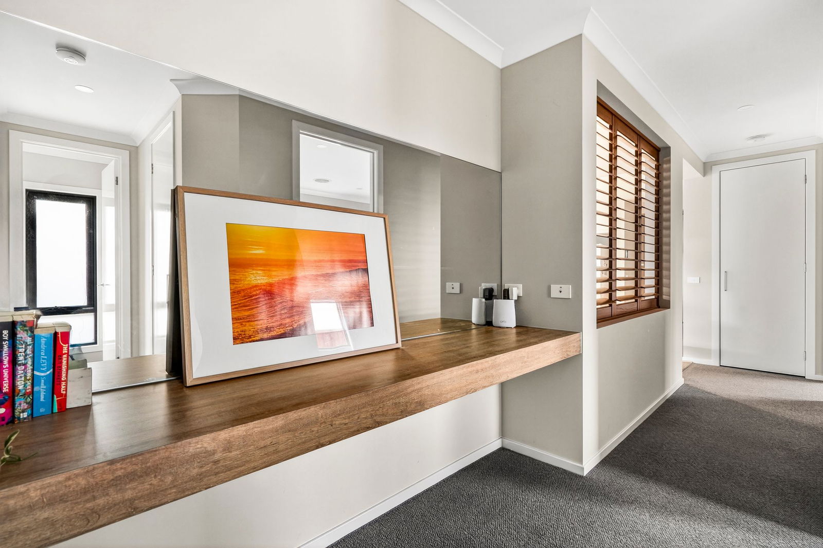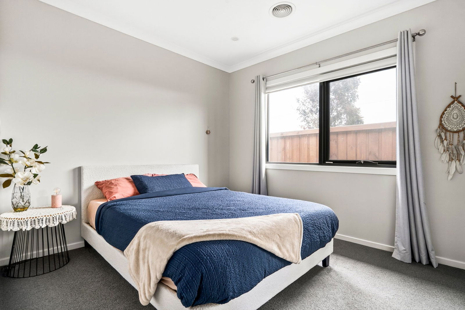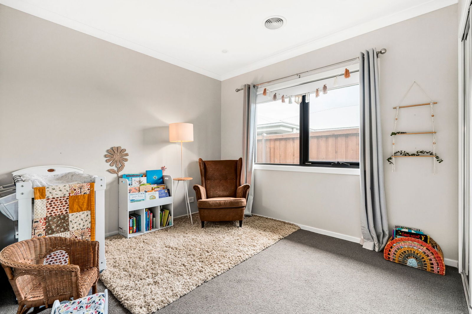 Additional Bedrooms: Concealed within an accommodation wing, three bedrooms each feature mirrored built-in robes, carpet, and a window with roller blind and curtain.