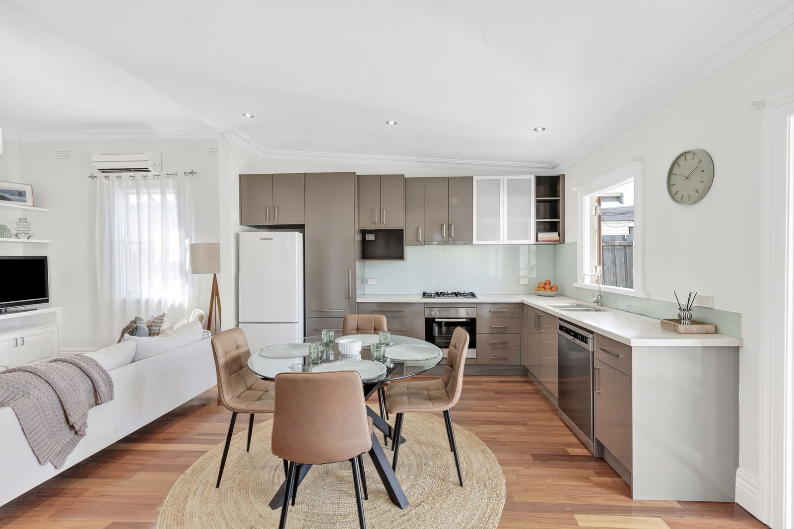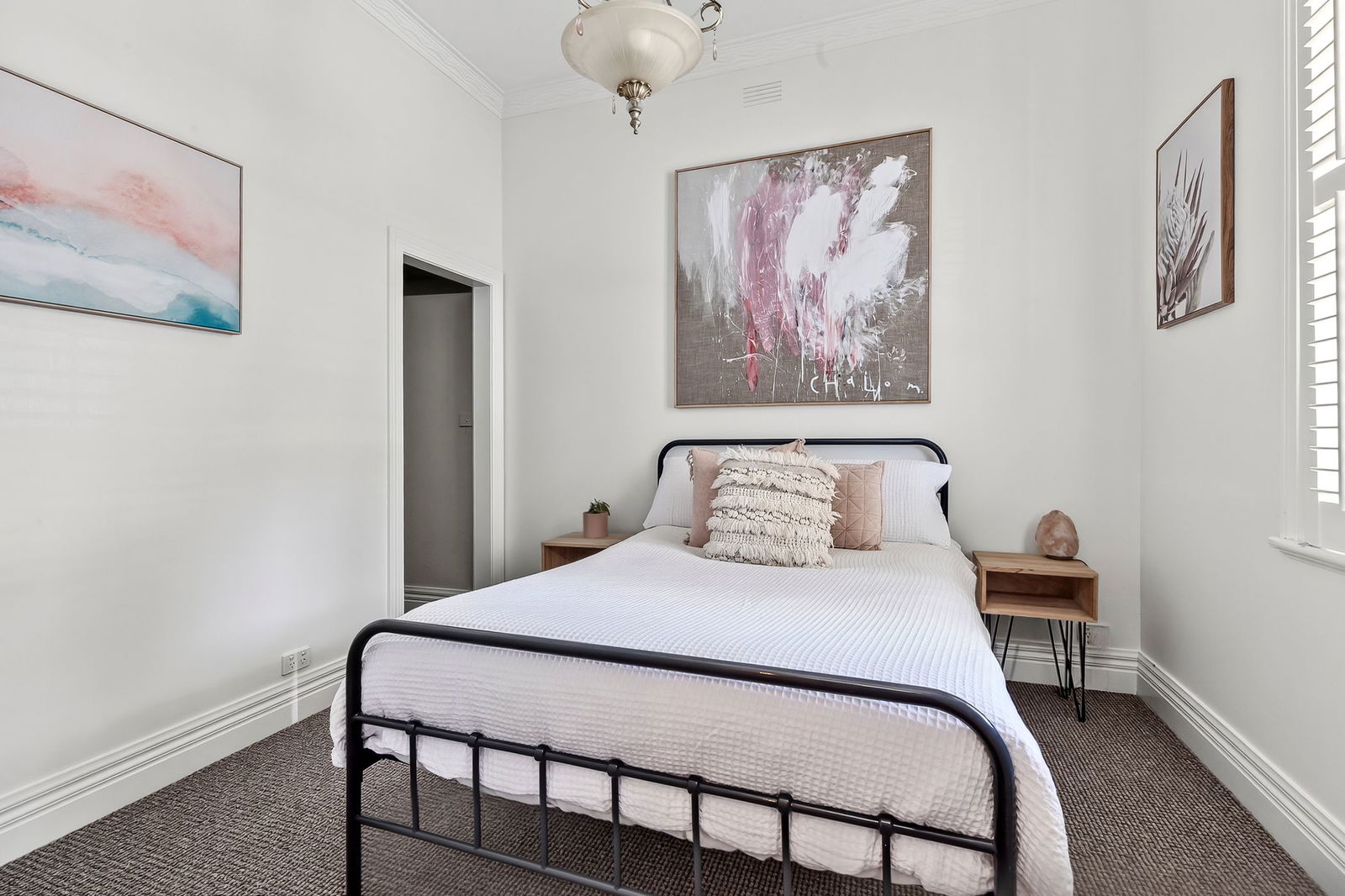 With its elegant period facade and undeniable street presence, this beautifully renovated three bedroom home captures the essence of city-fringe living. Perfectly placed in a sought after pocket of East Geelong, it offers a lifestyle where morning coffees at local cafés, strolls along the Waterfront and afternoons in the Botanical Gardens are all within easy reach. Inside, the warmth of polished timber floors and the character of yesteryear blend seamlessly with modern updates. The open plan living, dining and kitchen zone invite gatherings, with sleek appointments including gas cooking, electric oven and dishwasher. Three bedrooms are softened by plush carpets, while the master is enhanced with an ornamental fireplace and period detail. A study nook with built-in cabinetry adds versatility. Beyond the interiors, a secure, low-maintenance backyard with outdoor entertaining deck, garden shed and cubby provides space to unwind or entertain. Lifestyle and location in perfect partnership.
