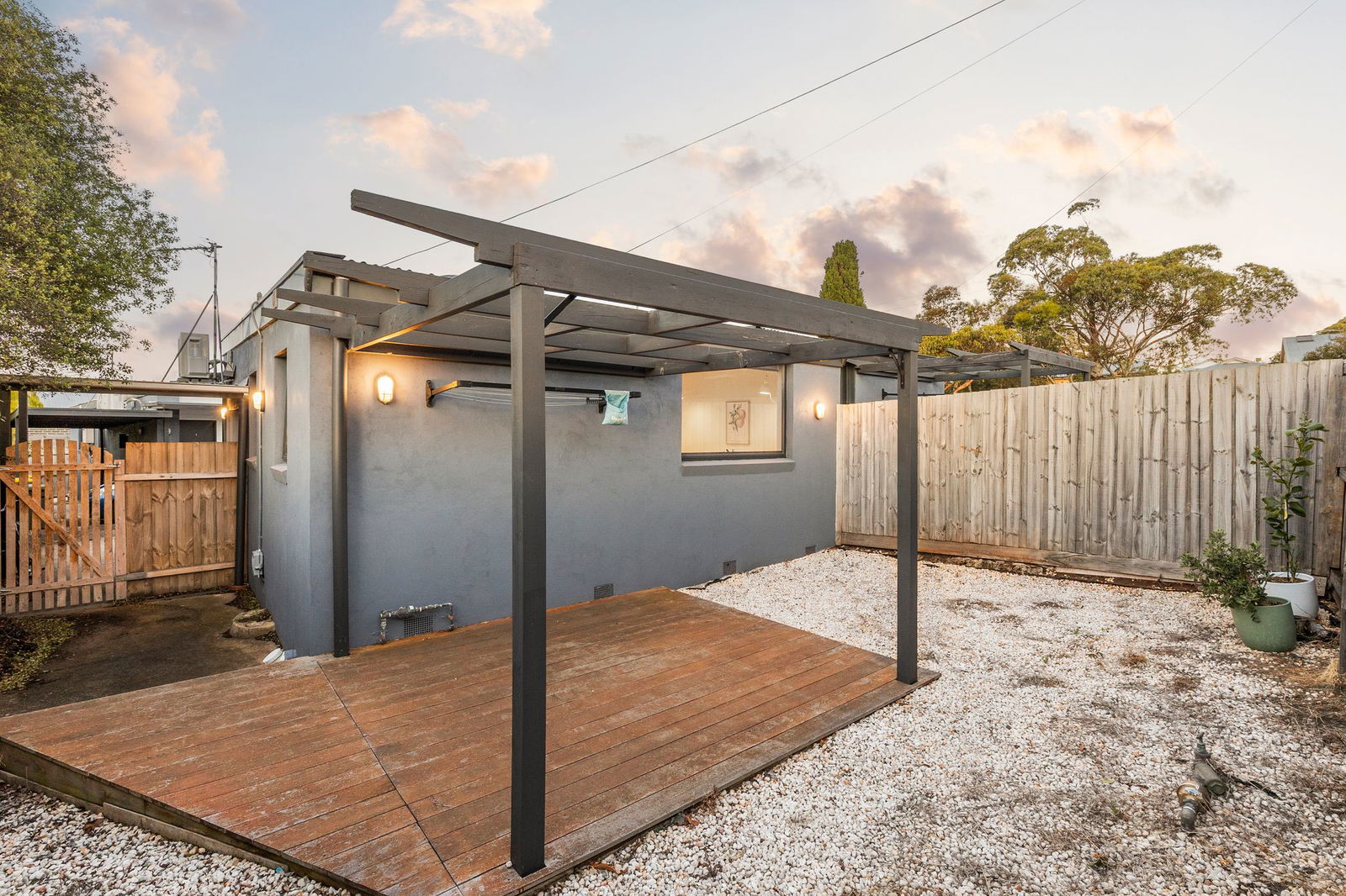 Outside: A decked patio with pergola provides a relaxed outdoor setting to the rear, where garden stones keep maintenance extremely minimal. Complete with clothesline, pedestrian side access, and single carport.