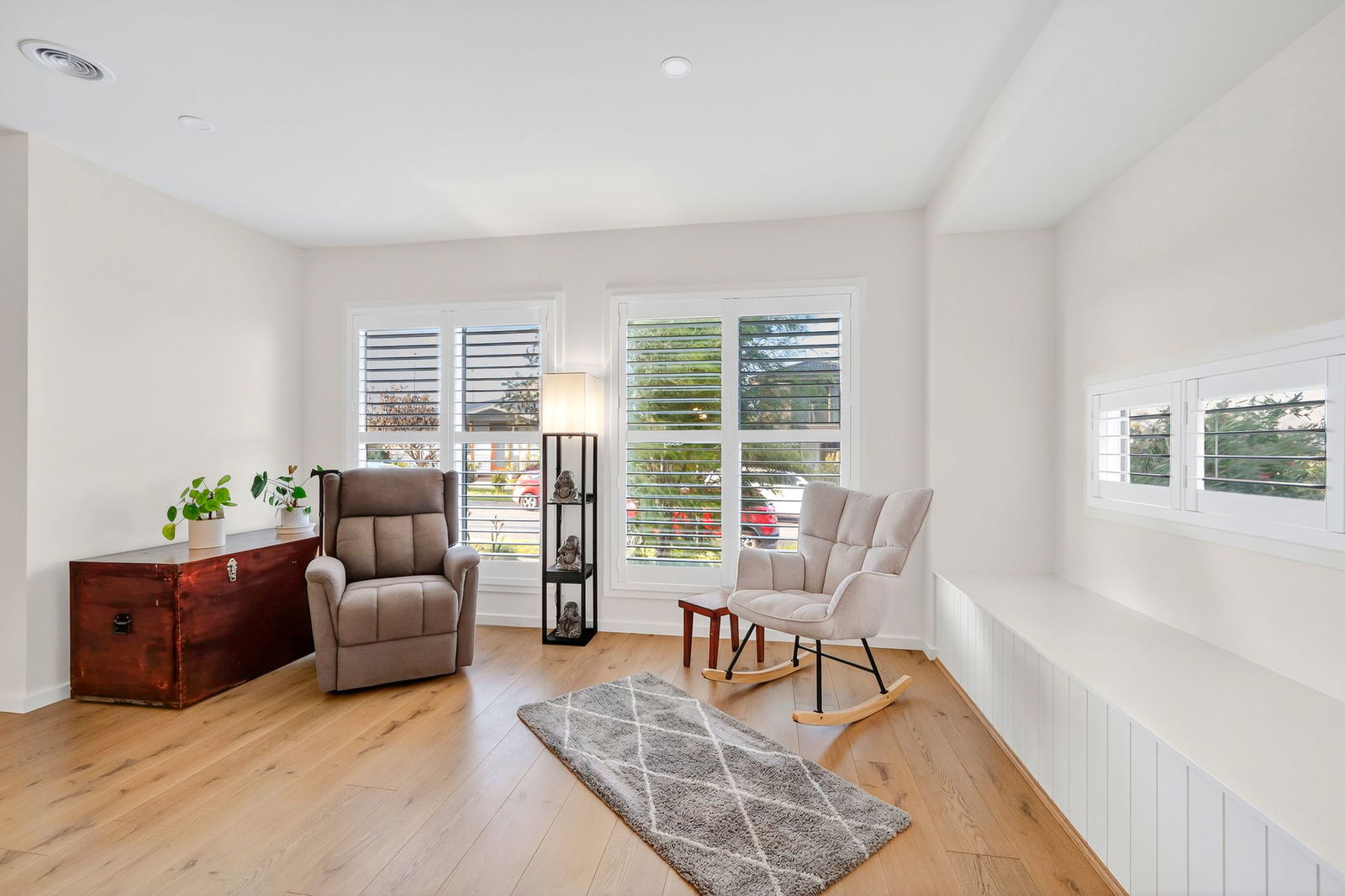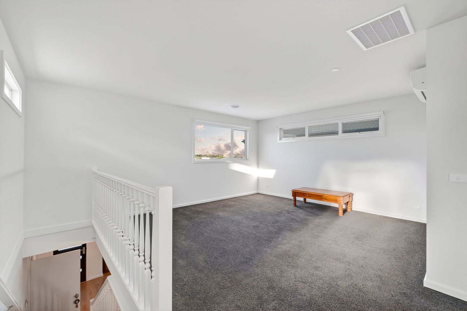 Rumpus – Upper level retreat with plush carpet underfoot, downlights, reverse cycle heating & cooling, ducted heating, built-in storage & highlight windows