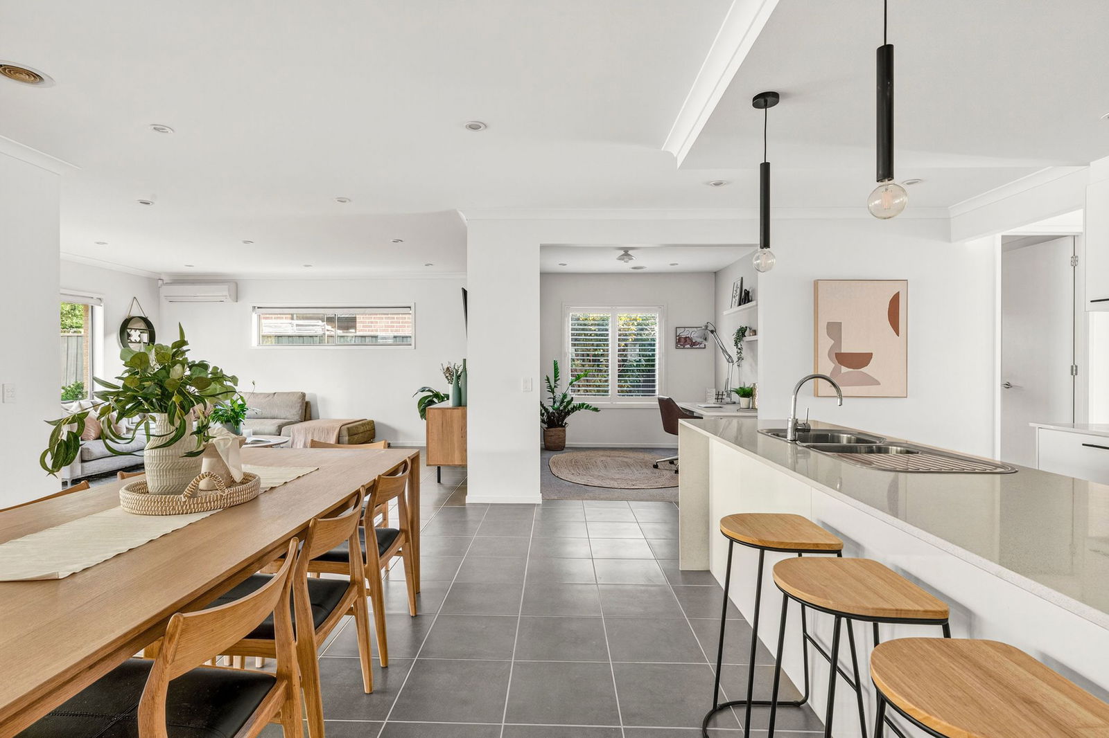 Imagine a home that bends and flows around your lifestyle. With three distinct living areas and a cascade of sliding doors spilling onto a sun infused undercover alfresco deck and private backyard, this single level 3BR stunner is made for everything from quiet mornings with coffee to rowdy Christmas lunches and endless backyard games. Soaring ceilings and tall doorways lift the interior footprint, amplifying light, air and a sense of grandeur while keeping that unmistakable feeling of home. The entertainer’s kitchen is a showpiece, featuring first class appliances, sleek joinery and effortless indoor-outdoor connection that makes hosting a breeze. Perfectly positioned within walking distance to schools, playgrounds, shops and public transport, this home blends convenience, comfort and style. Fun, flexible and full of life, this is where family memories are made, laughter echoes and entertaining becomes second nature.