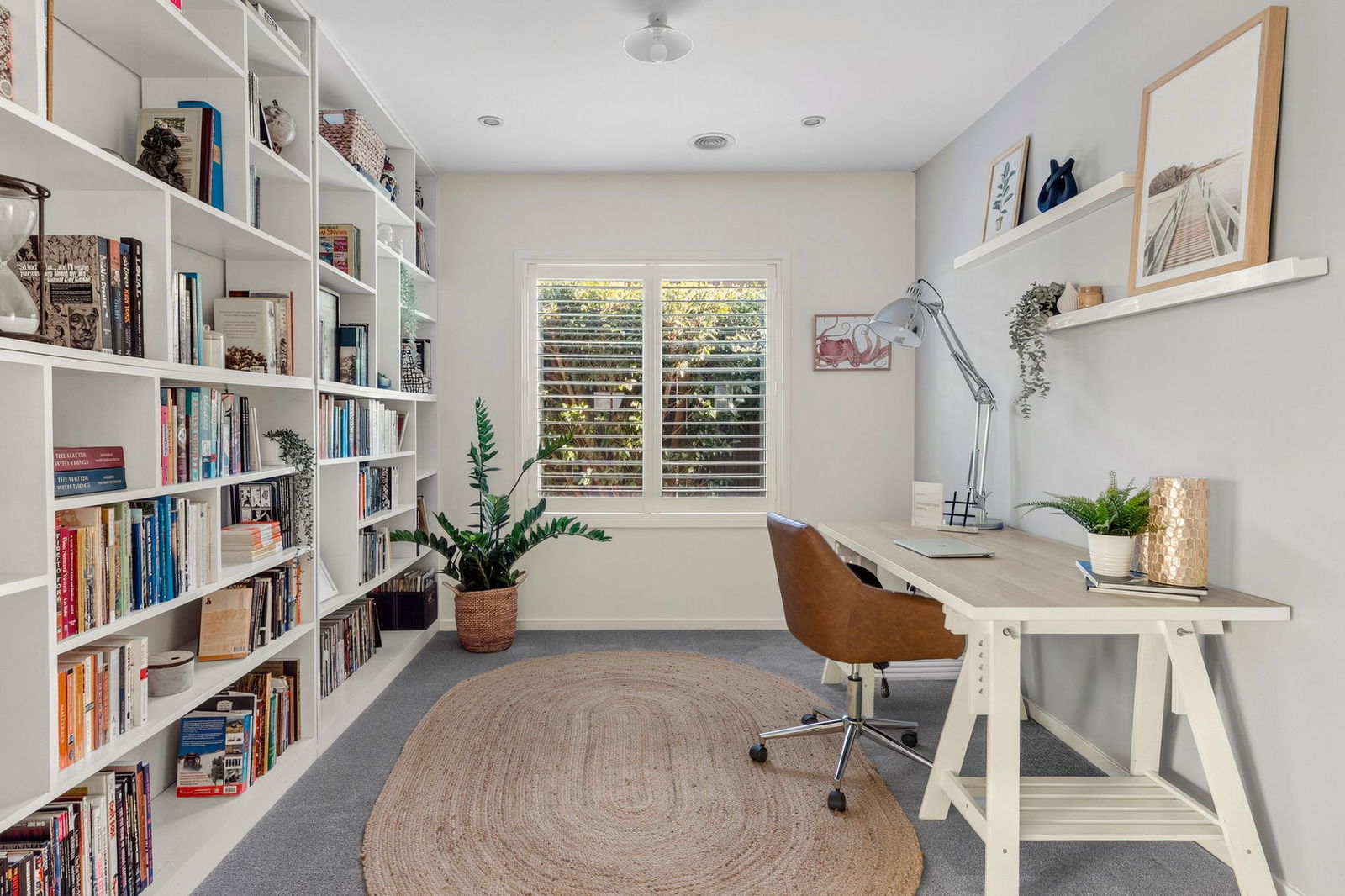 Study/Home Office – Well appointed study with floor to ceiling shelves.