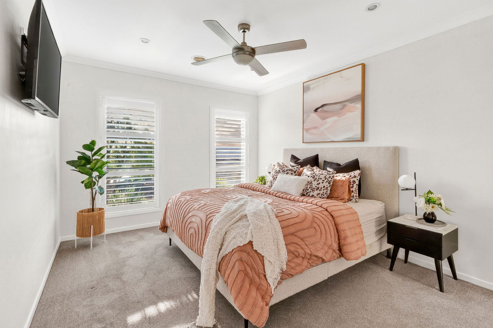 Master Suite – Spacious bedroom with downlights, ceiling fan & ensuite bathroom with single timber veneer vanity, shower & separate toilet