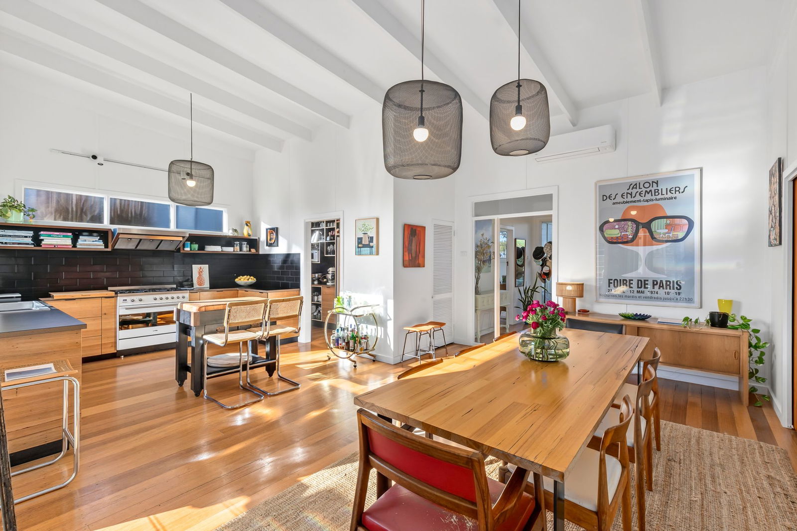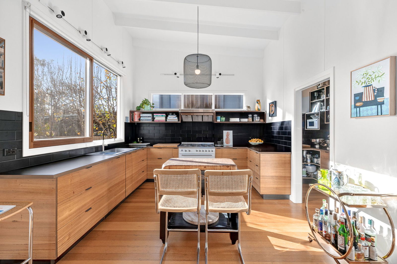 Kitchen – Stylishly renovated kitchen and meals area with hardwood timber floors, Blackbutt timber cabinetry, Miele & Qasair appliances along with a high-end Smeg 900mm freestanding oven & gas cooktop, tiled splashback, bespoke features such as an expansive kitchen servery window, spotlights, fully appointed walk-in pantry and feature pendant lighting. Reverse cycle air conditioning.