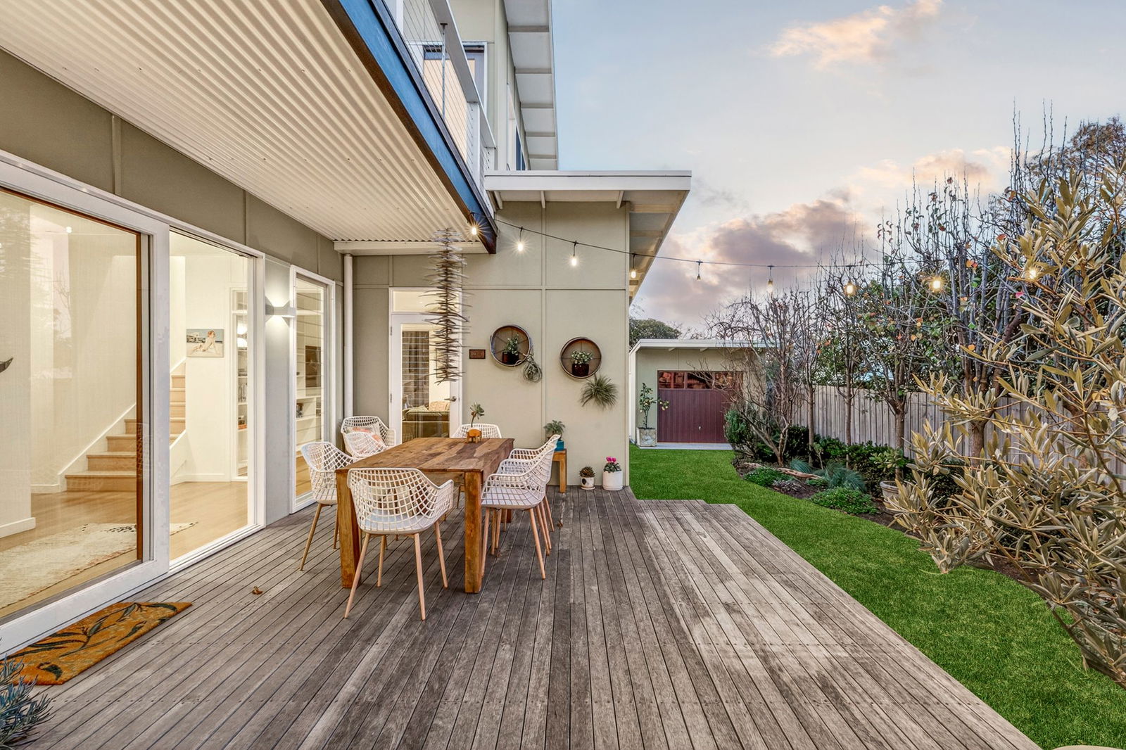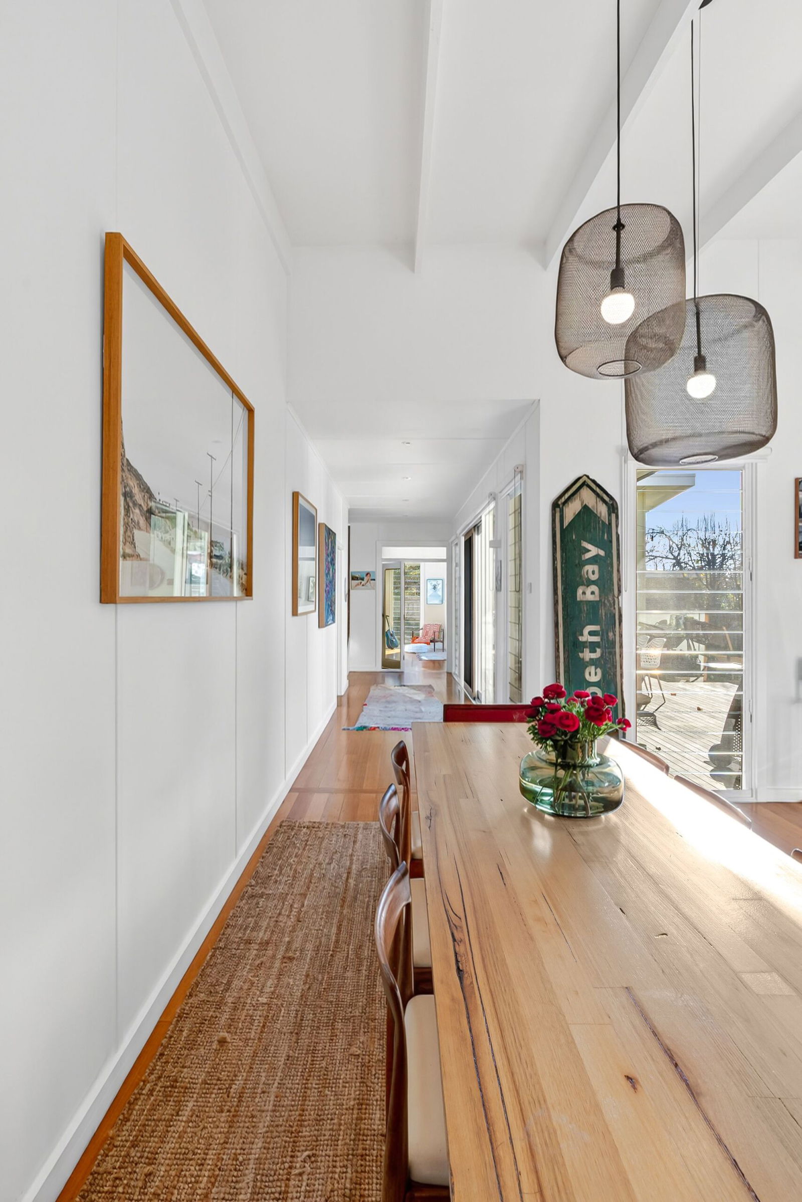 Step into a sun-drenched coastal dream. A renovated mid-century modern masterpiece where timeless architecture meets breathtaking ocean views. This four-bedroom (Option for five-bedroom) home is a celebration of light, space, and style, with soaring ceilings, hardwood timber floors, and expansive north-facing glazing that floods the interior with sunshine and frames the natural beauty outside. Original charm blends effortlessly with modern sophistication, creating inviting spaces perfect for relaxed living and entertaining. The lower level enjoys ocean glimpses, while the upstairs master suite opens to a private viewing deck boasting panoramic vistas across to Point Lonsdale and Cape Schanck. Whether you’re curled up with a book in the sun or entertaining with the ocean as your backdrop, this home captures the very best of coastal living where you will never miss a moon rise or sunrise ever again. A rare blend of character, comfort and location, just moments from the beach. This is not just a home, it’s a lifestyle, a statement and a sanctuary.