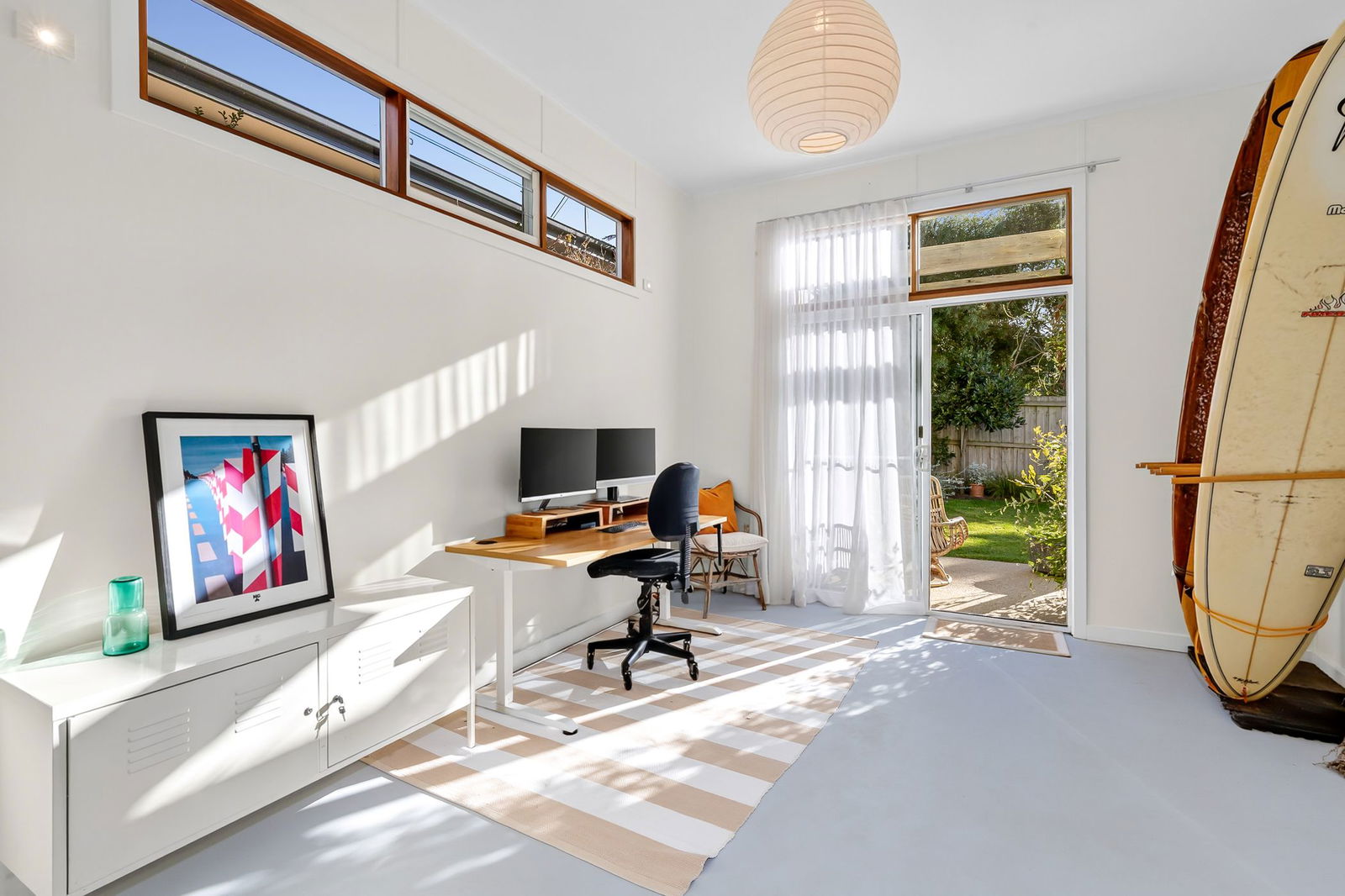 Study/Home Office – Fully appointed with bespoke timber cabinetry and shelves, Hardwood timber floors, louvre window, downlights