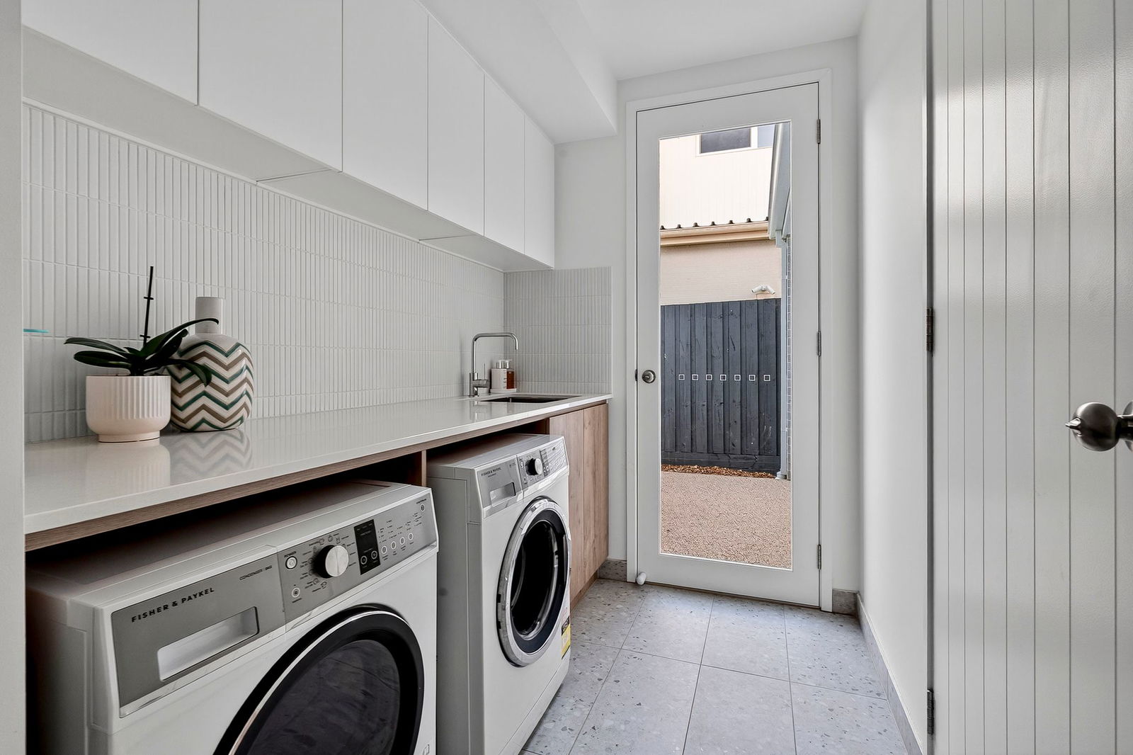 Luxury Inclusions: Front lounge and secondary sitting room, wide entry hall, spacious laundry with ample storage and side access, ground floor powder room with shower, architectural timber staircase with glass balustrade, gas hot water, gas ducted heating, refrigerated cooling across both floors, square-set cornice, double glazed windows, and a double garage with drive-through access.