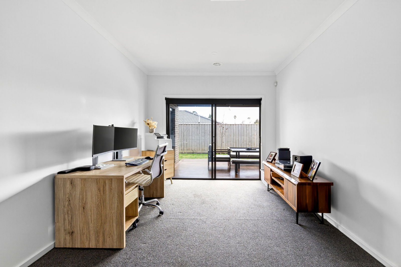 Luxury Inclusions: Gas ducted heating, evaporative cooling, downlights throughout, premium carpet, modern flooring, tiled roof, a rumpus/home office with direct alfresco access, and a dedicated laundry with side access.
