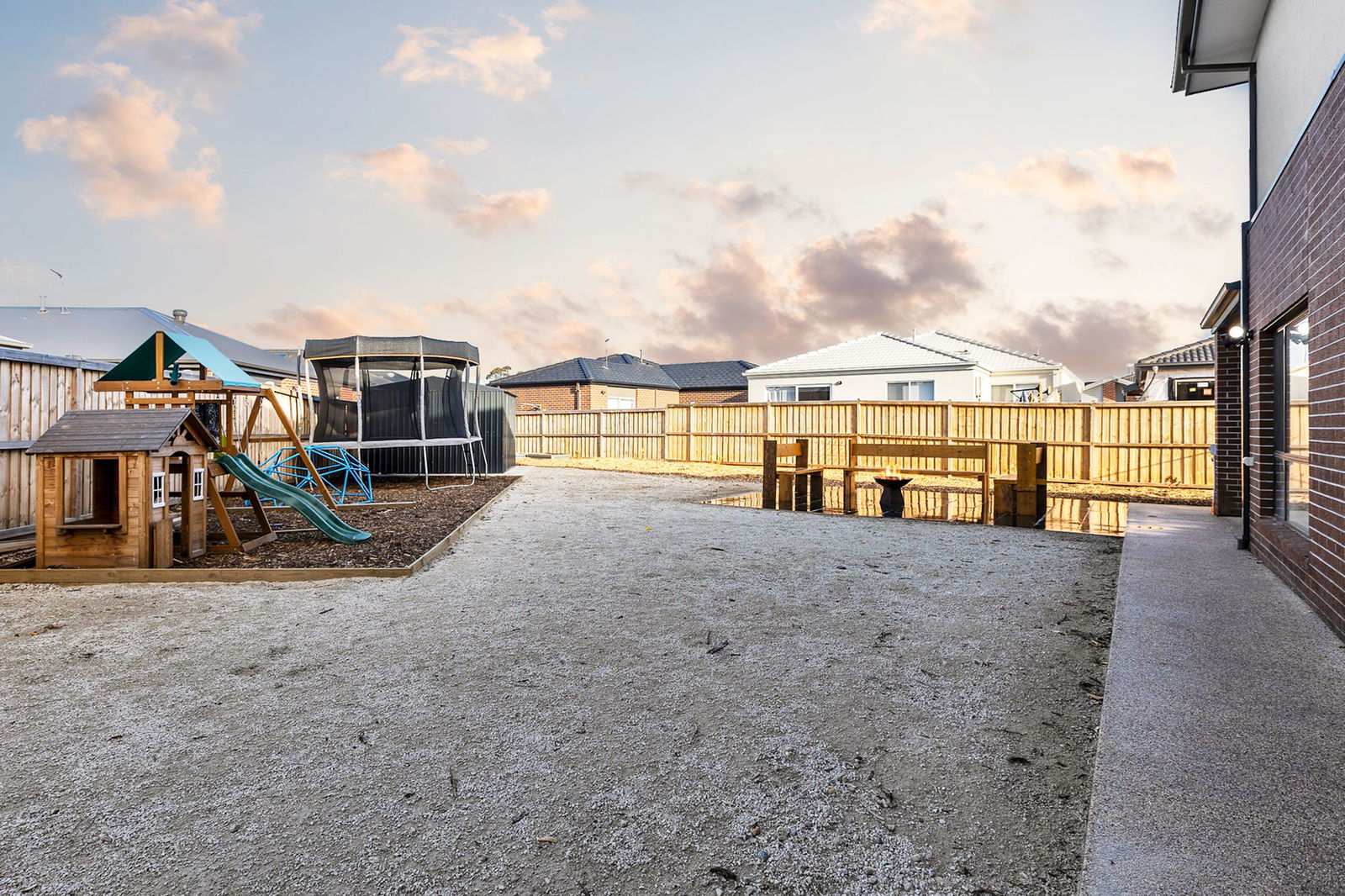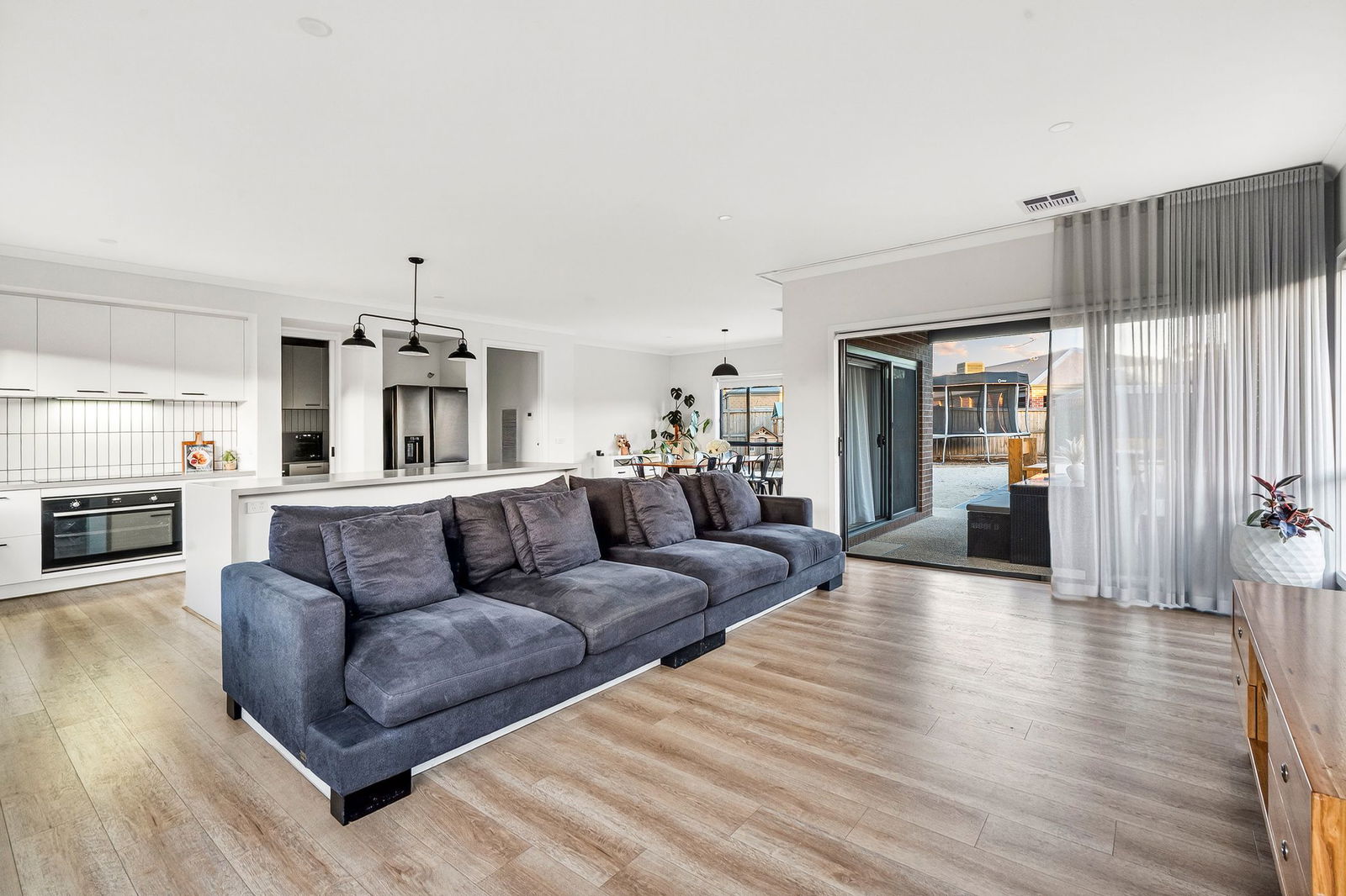 Outside: The north-facing 752sqm (approx.) allotment brings families outside with an array of amenities including a paved fire pit area, dedicated space for the trampoline and children’s climbing equipment, a rear shed, and open entertaining space beyond private fencing. A double garage with young landscaped gardens offers an opportunity to keep low-maintenance or extend as the desire develops.