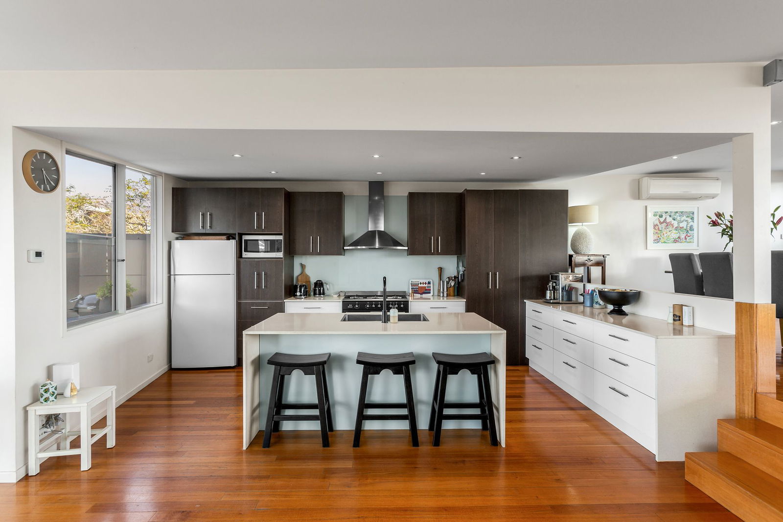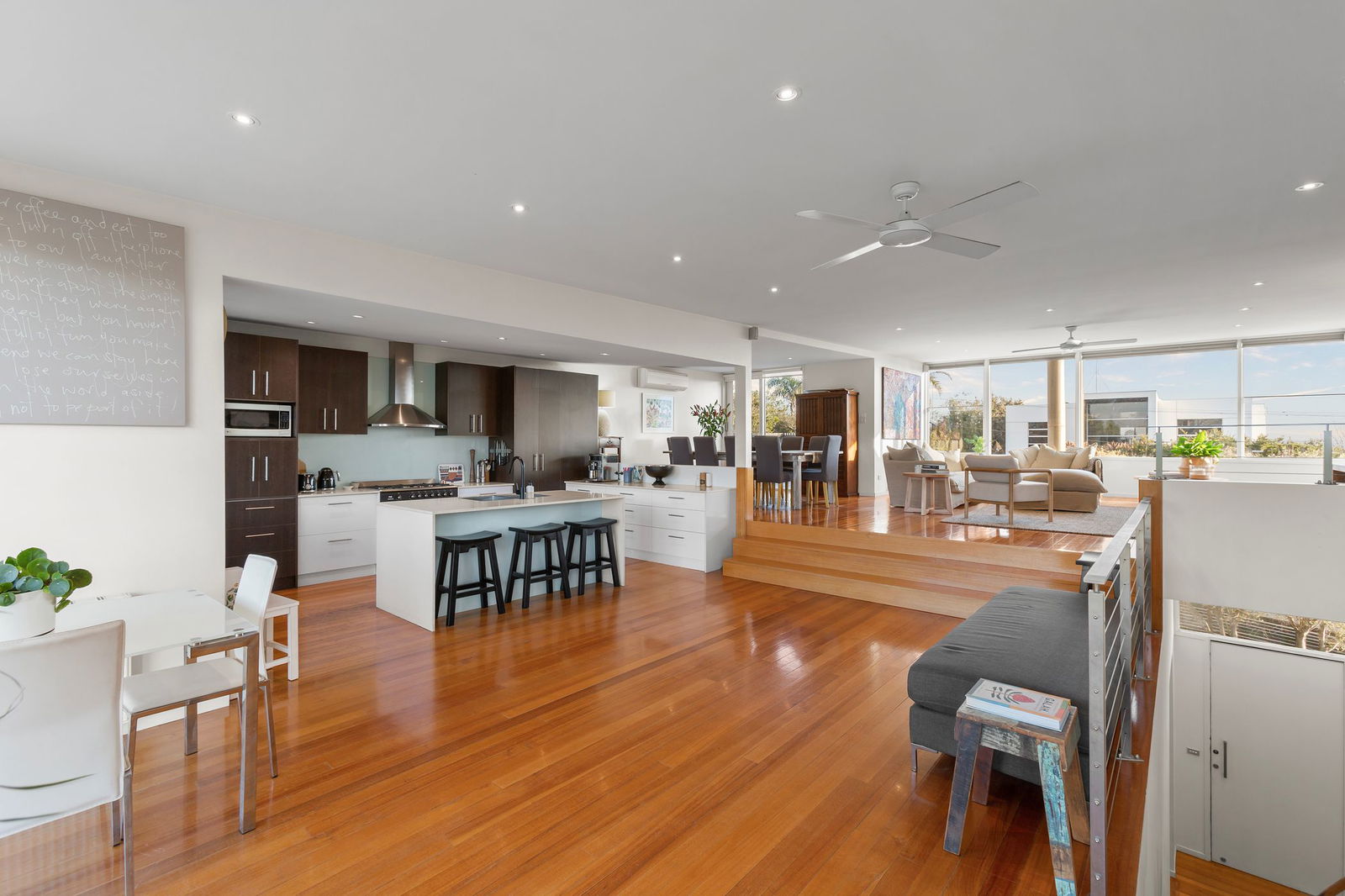 Soaring ceilings, solid timber flooring, floor-to-ceiling glazing, expansive outlook across the estuary and ocean, direct access to elevated alfresco decks, and climate comfort with hydronic heating and reverse cycle air-conditioning.