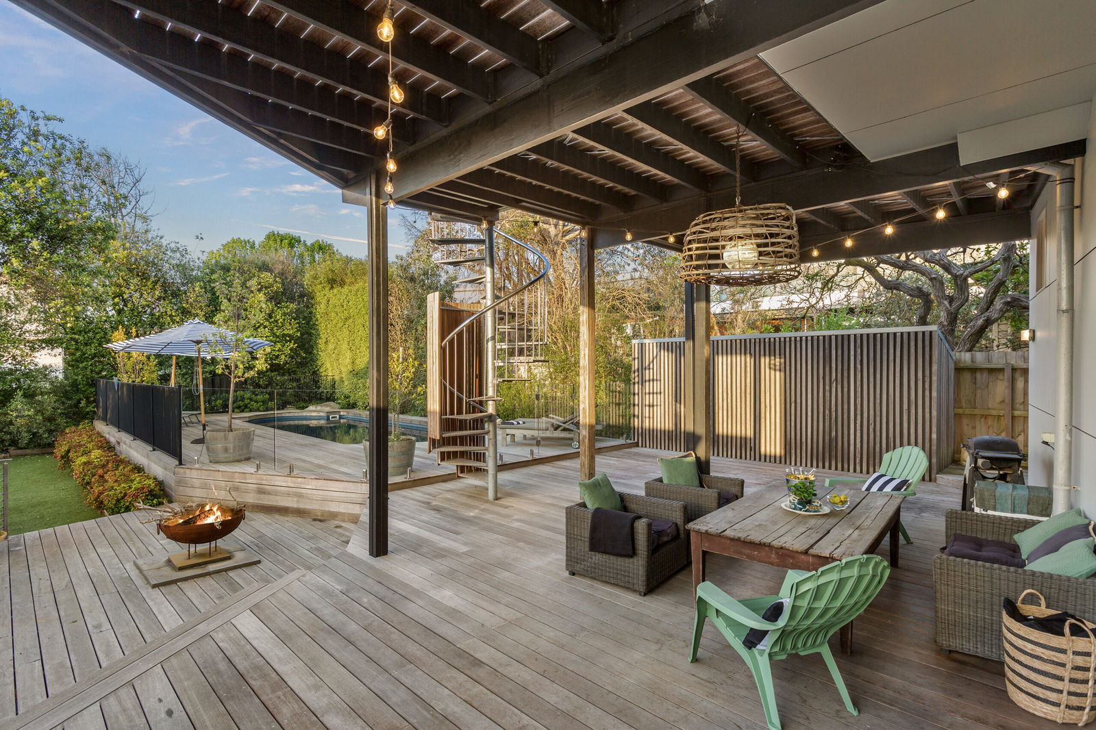 Large retreat anchored by an original open fireplace, ideal for family separation or cosy winter evenings, with direct flow to outdoor entertaining.
