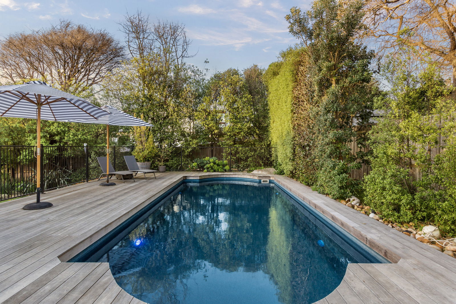 Expansive undercover deck, heated resort-style swimming pool, outdoor shower and WC, landscaped low-maintenance backyard with a north-facing orientation, purpose-built pool shed, and multiple storage solutions.