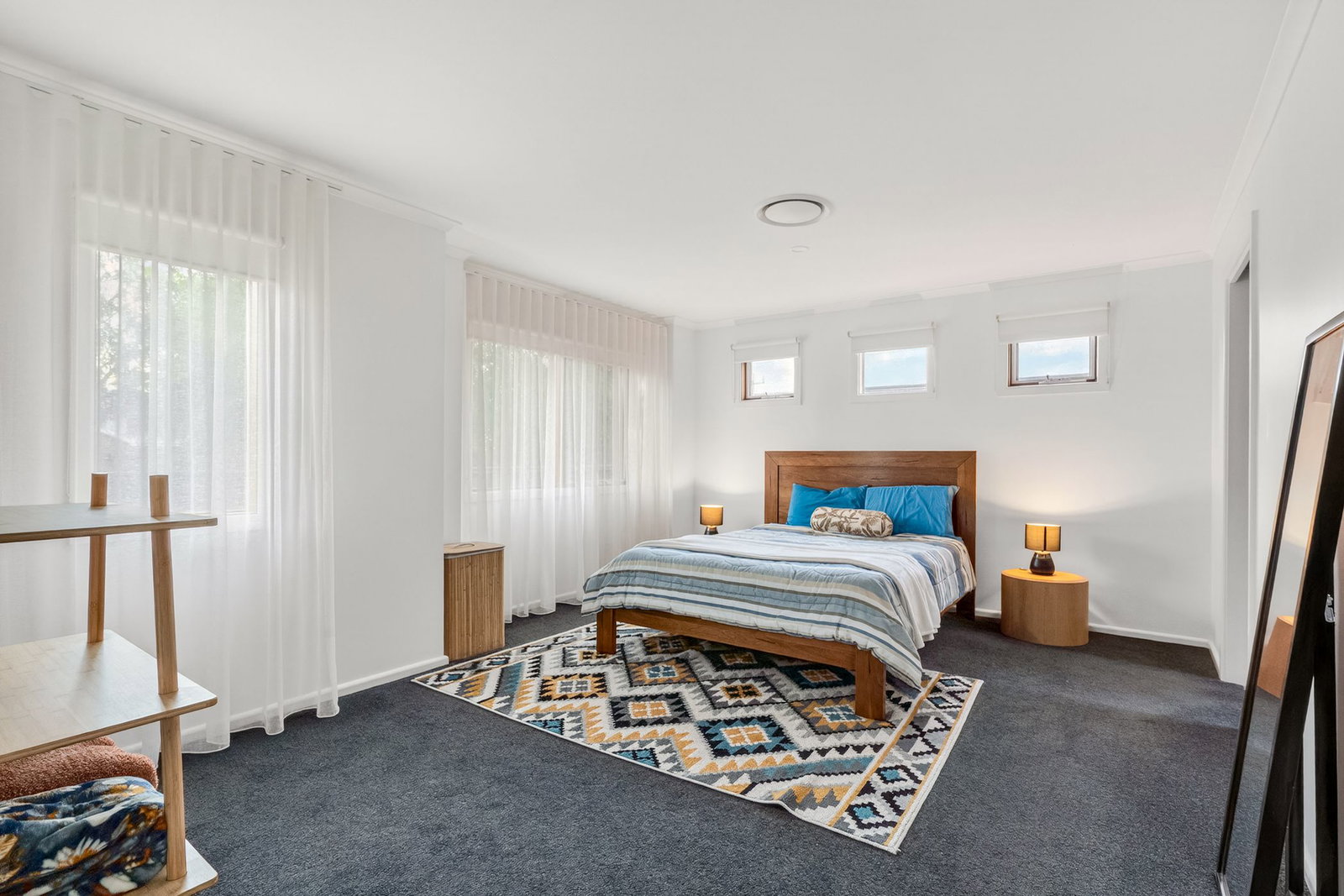 Additional Bedrooms: Tucked within a private accommodation wing alongside the main bathroom and laundry, twin bedrooms provide comfort with carpet underfoot, built-in robes, a window with roller blind and sheer curtain, and downlights.
