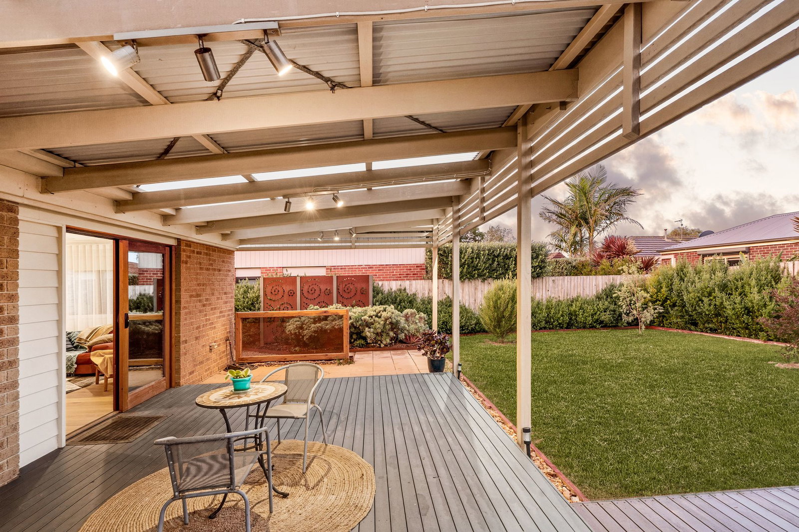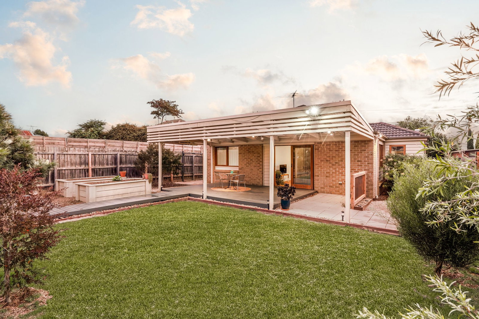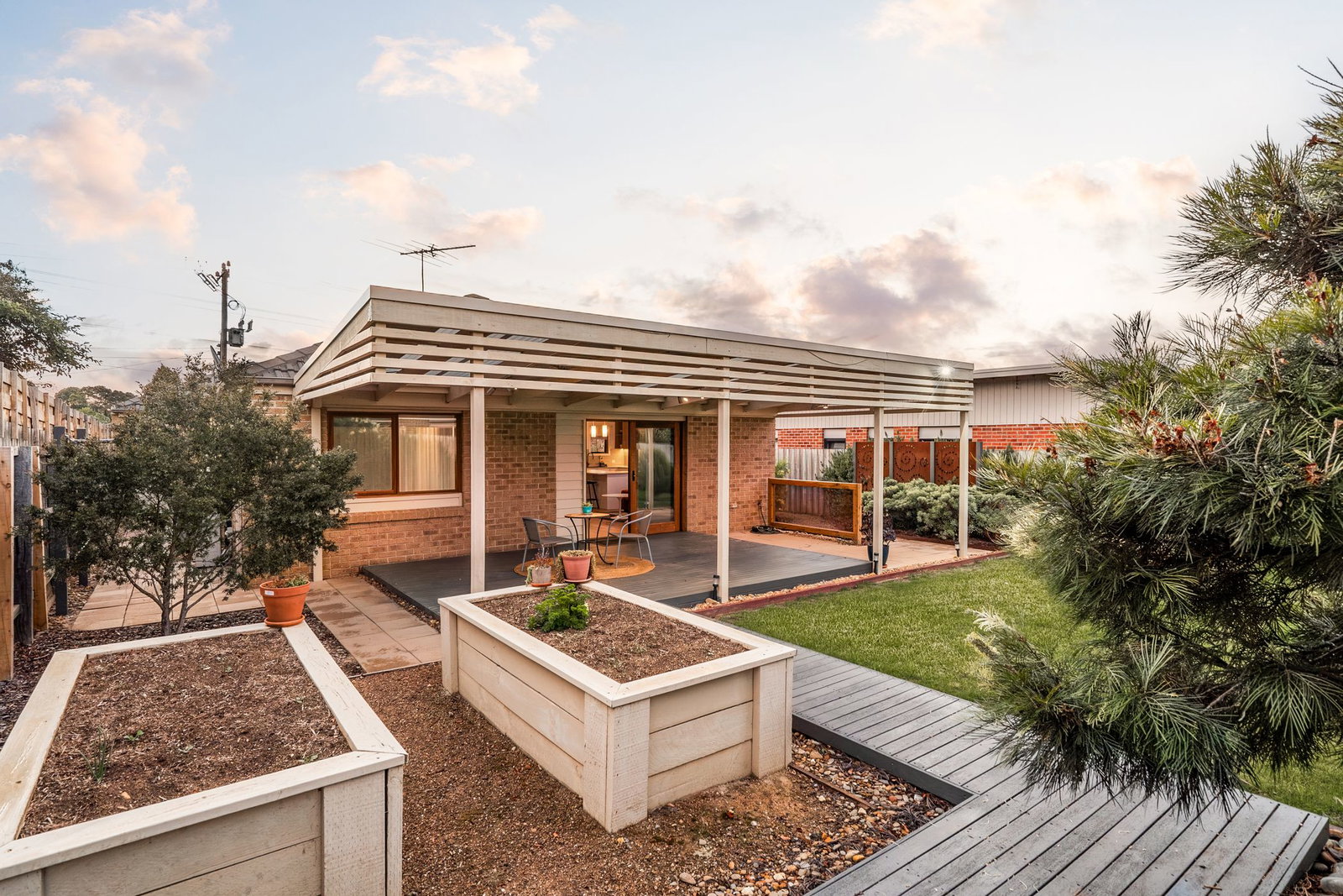 Outside: A decked patio is extended with paving, with a central grassy play space framed by lush planting and raised veggie gardens. Completing the low-maintenance 619sqm (approx.), a landscaped frontage, concrete driveway, exposed aggregate pathway, and a double garage with internal access.