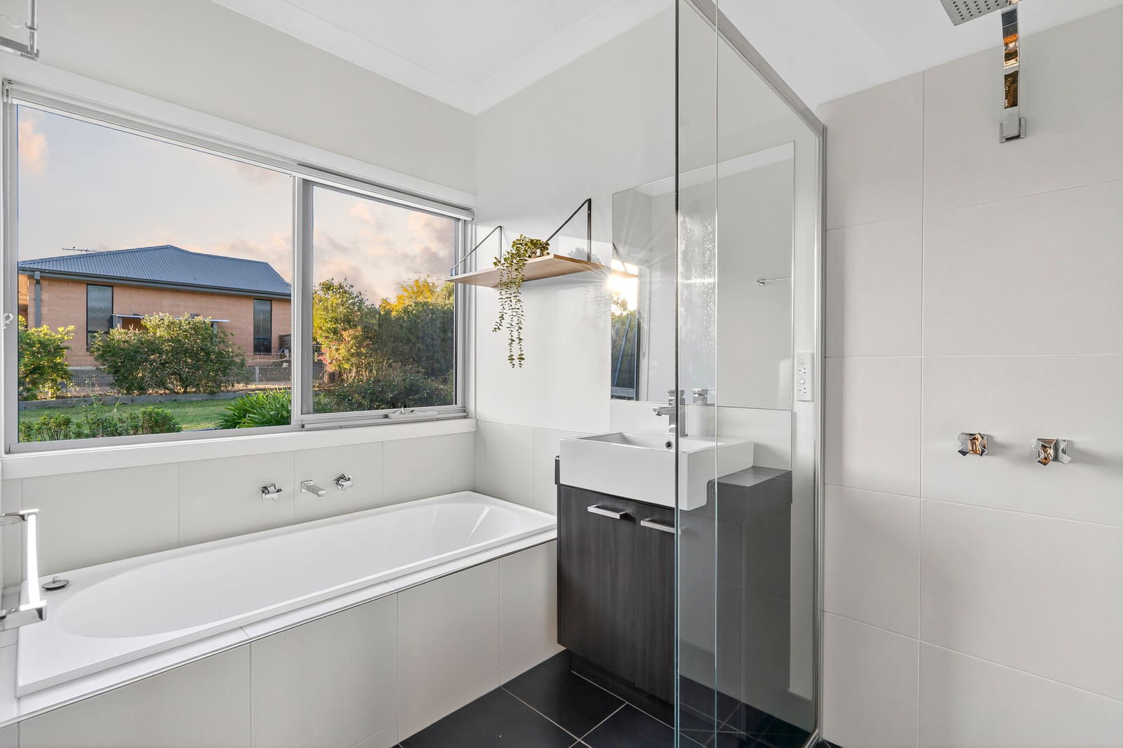 Main Bathroom – Highly functional and stylish with single vanity, shower, bath and separate w.c