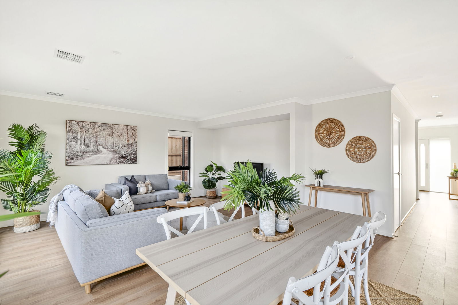 Defined: Holding a coastal character all of its own, this unassuming double-storey home brings large families together with five bedrooms, dual living zones, and a wealth of storage throughout. A fresh coastal palette pairs with modern floors to bring a dynamic warmth to all high traffic interior spaces, while premium carpet softens areas designed for relaxation.