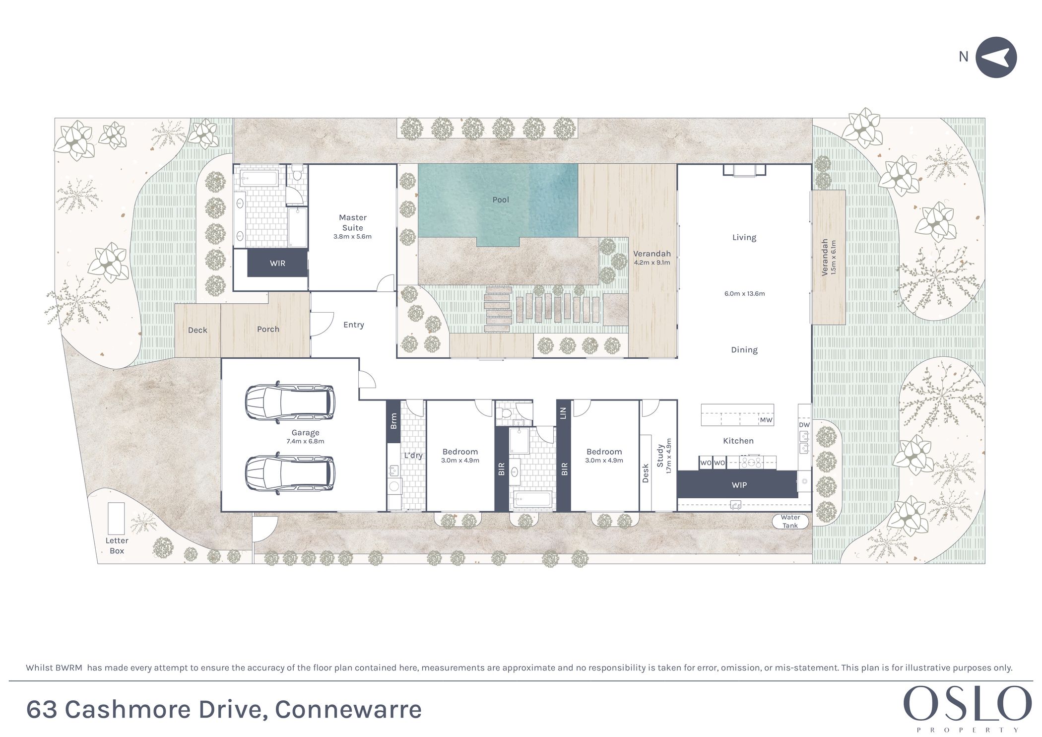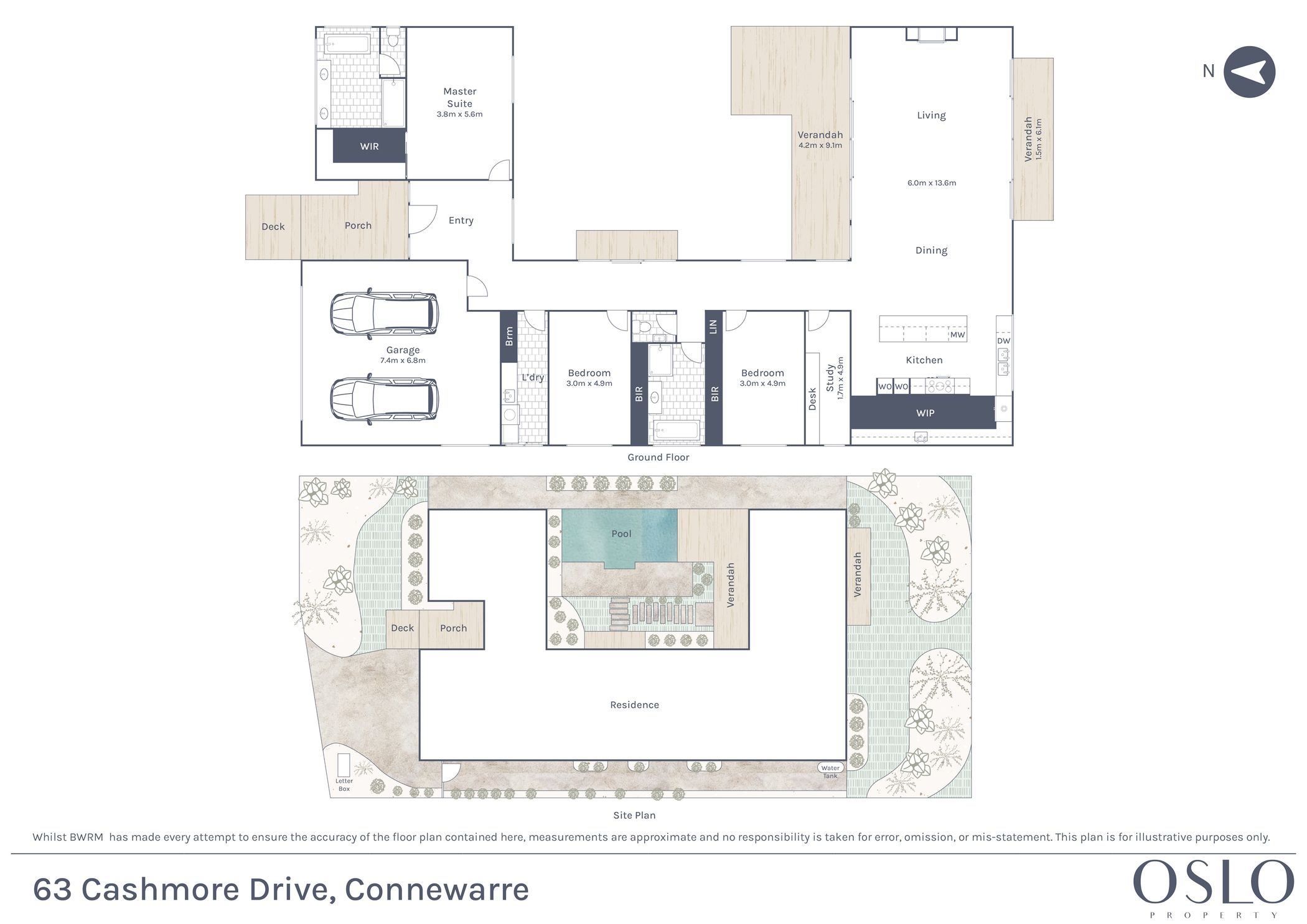 Luxury Inclusions: Ducted reverse-cycle heating and cooling, engineered timber floors, premium carpet, dedicated study with in-built desk, downlights throughout, laundry with side access, solar system, feature stone entry with timber clad facade, water tank, and oversized double garage with internal access.