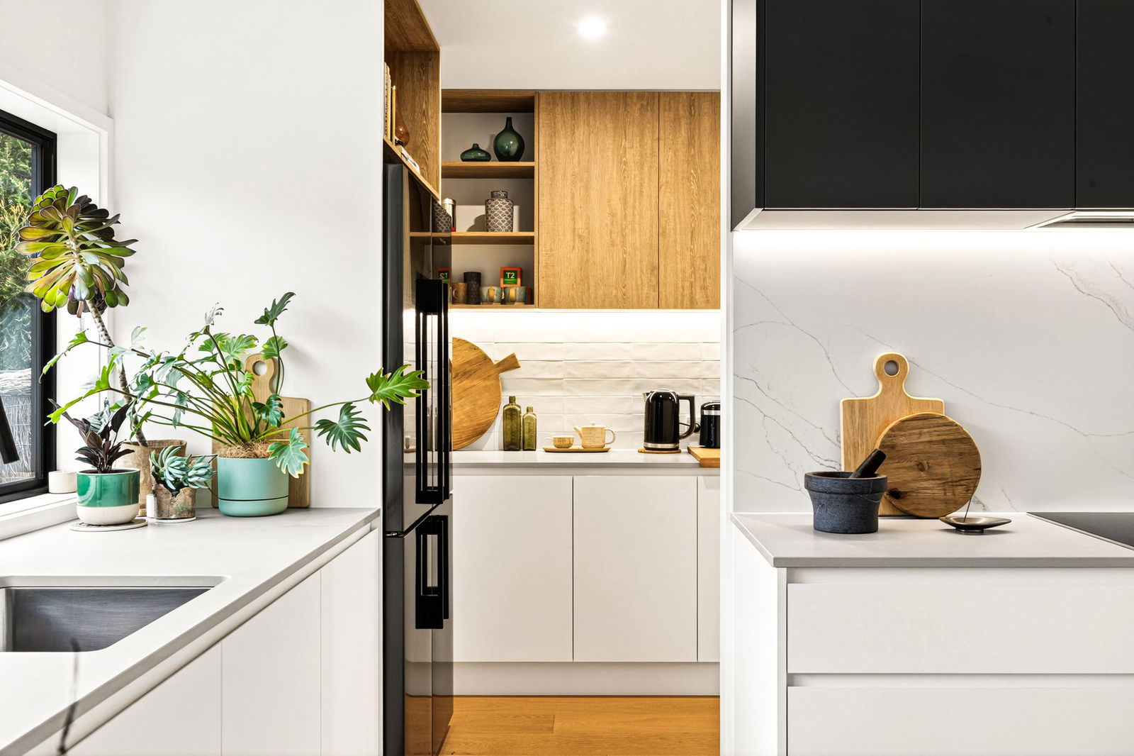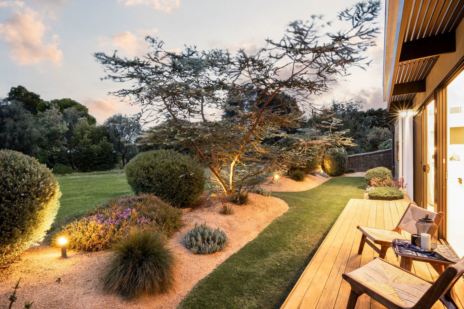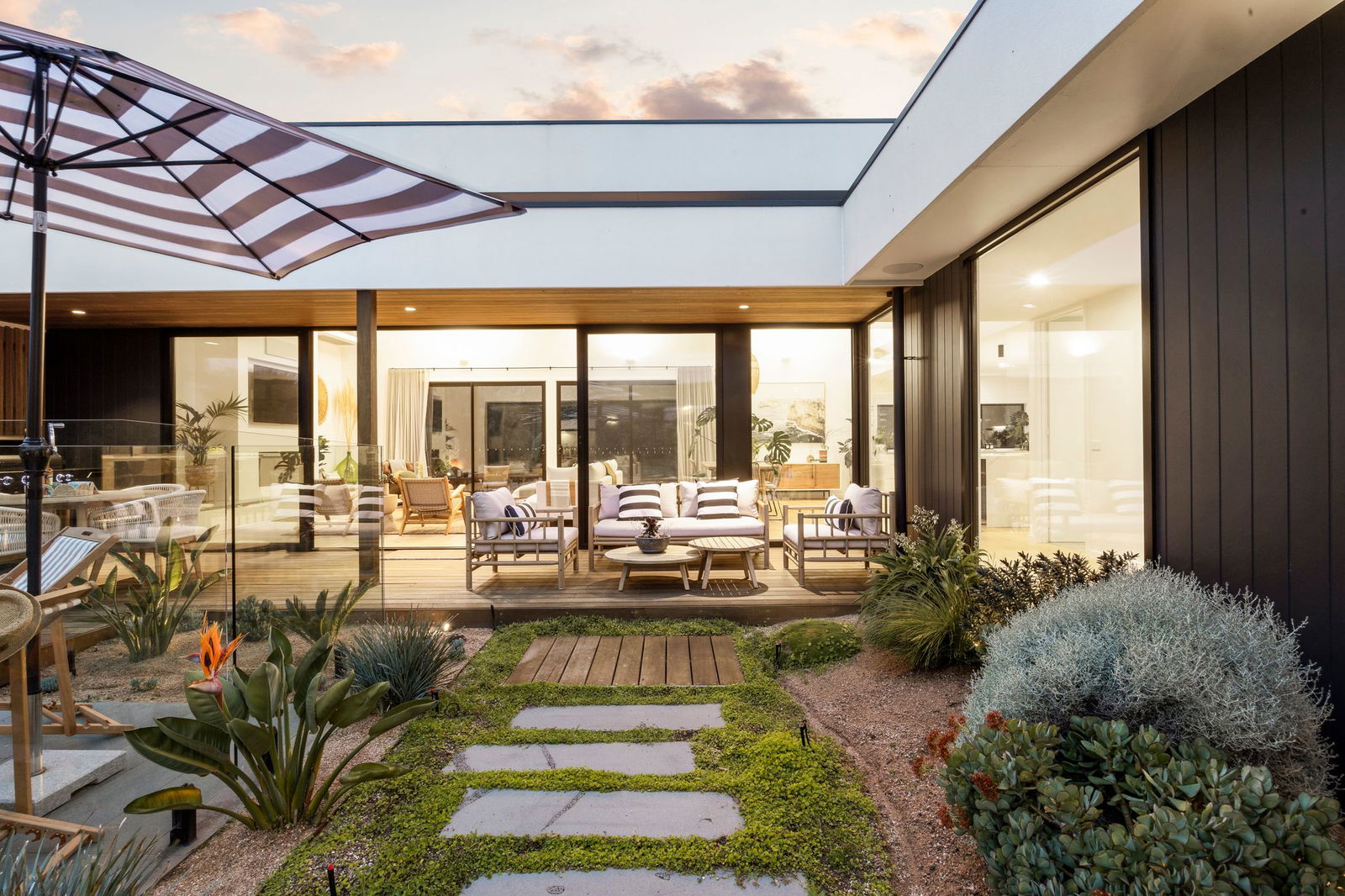 With lofty ceilings and abundant natural light, meticulously curated elements of timber, stone, and glass capture a warm and inviting atmosphere throughout the three bedroom design. Open and airy, the layout delivers easy living for golf enthusiasts, with landscaped gardens meeting with the course to the rear.