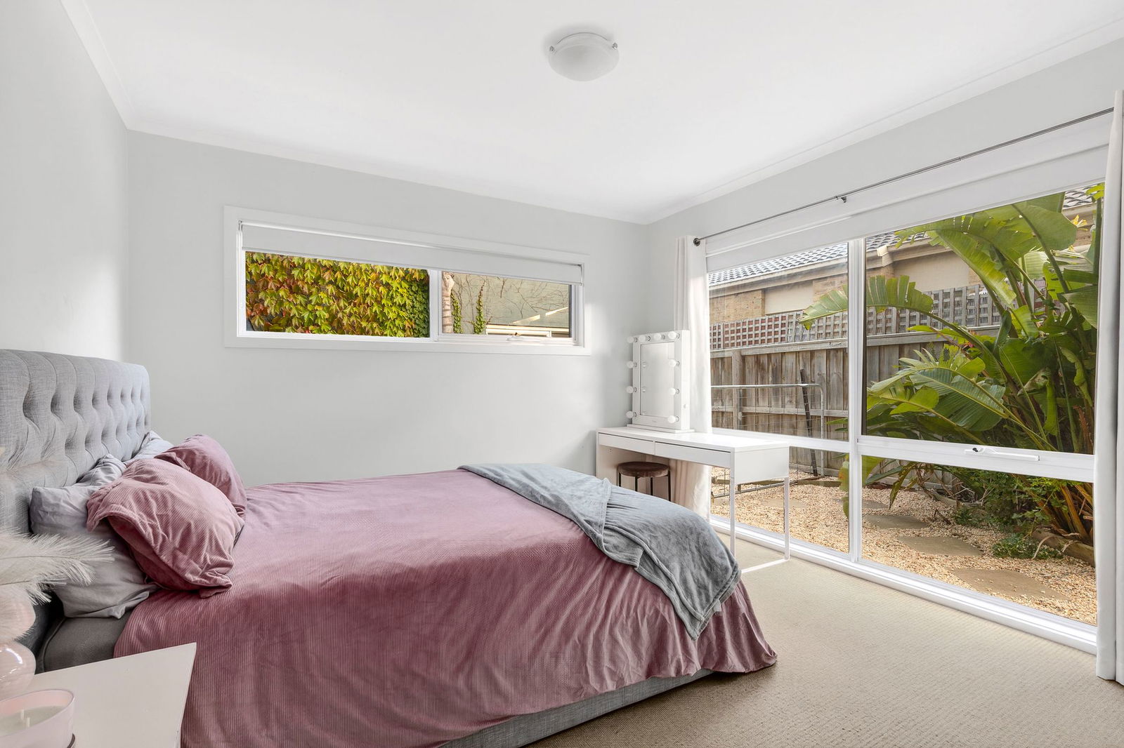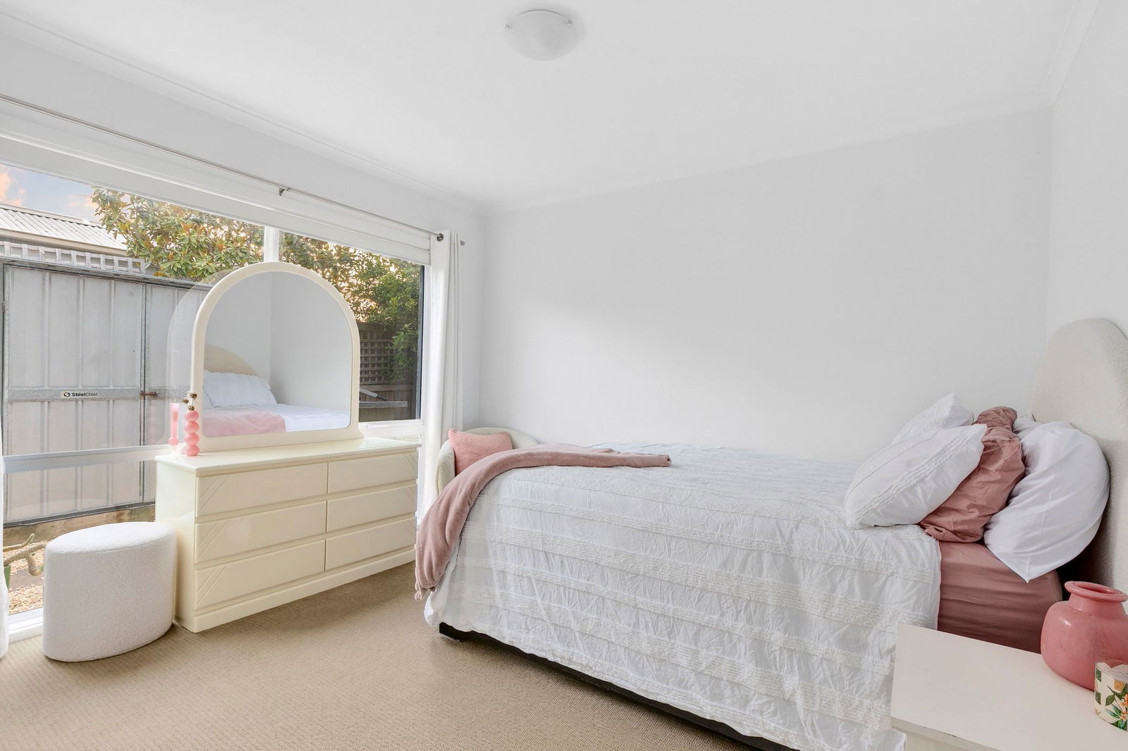 Additional Bedrooms: Two ground-floor bedrooms each feature built-in robes, carpet underfoot, a window with blackout curtains, and a central light.