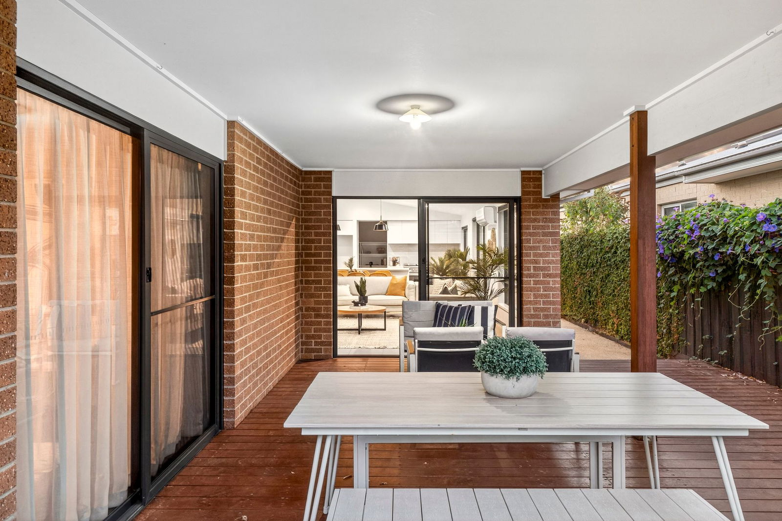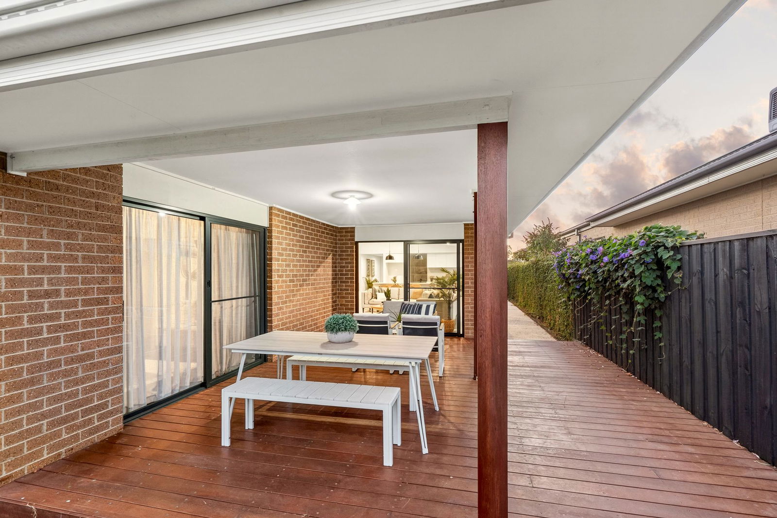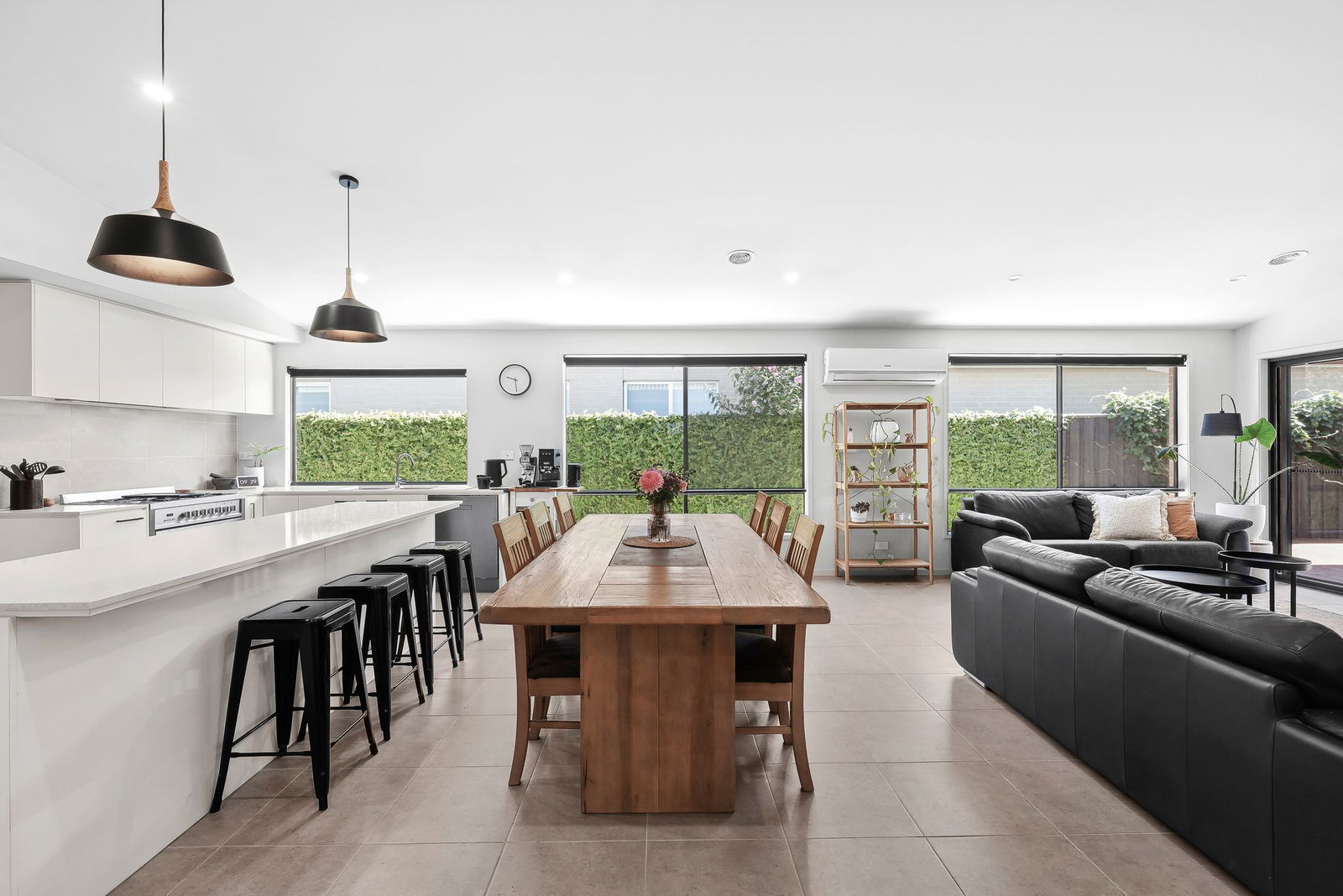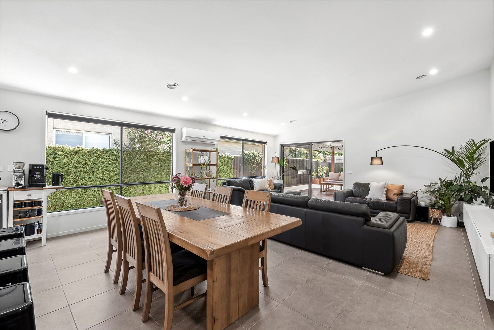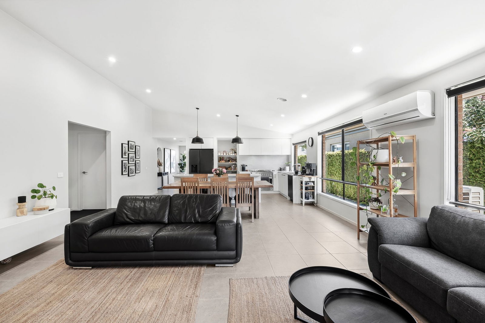 Living/Dining – Open plan living and dining area with plenty of natural light, feature raked ceiling which further enhances the main living rooms abundance of space, tiled floors, downlights, custom joinery, roller blinds, ducted heating, reverse cycle heating & cooling, immediate connection to the beautifully decked undercover alfresco area