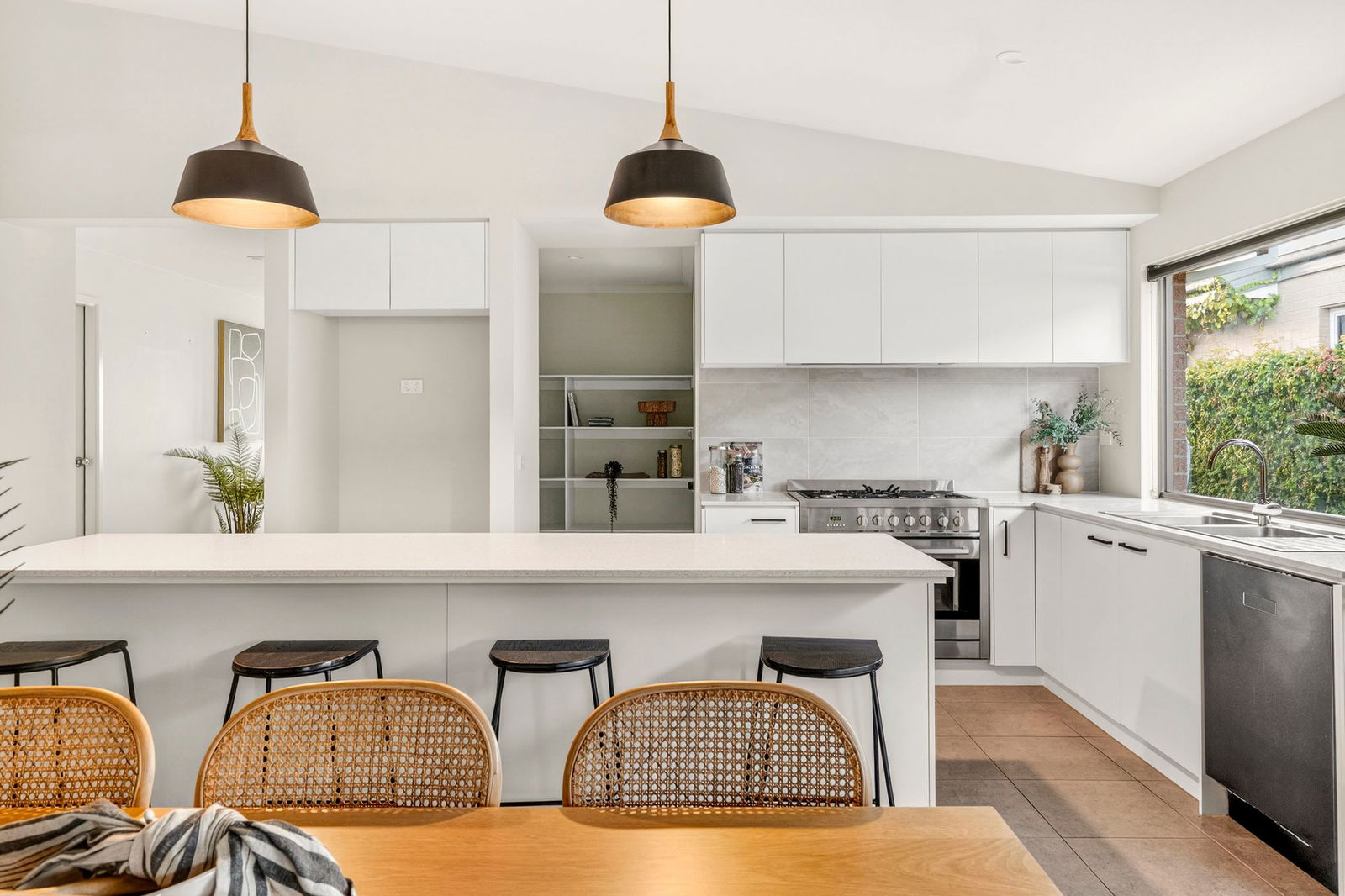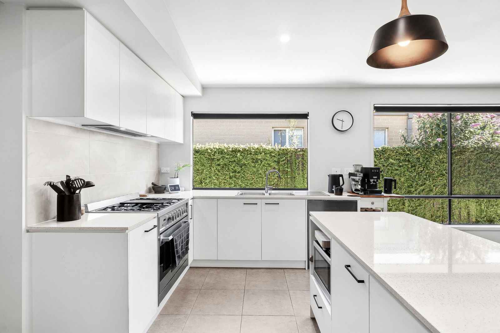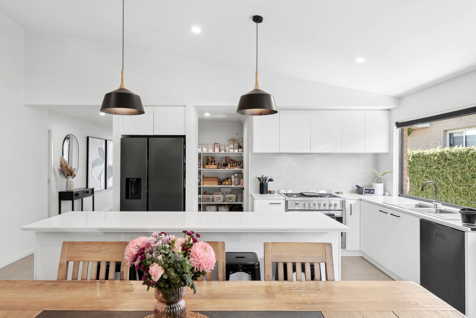 Kitchen – Light & bright with a high quality 5 burner gas cooktop, 900mm electric oven, stainless steel appliances, stone benchtops, ample storage space and a huge walk in pantry