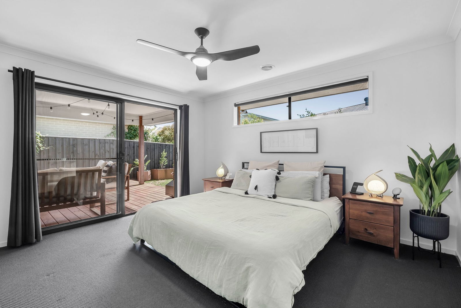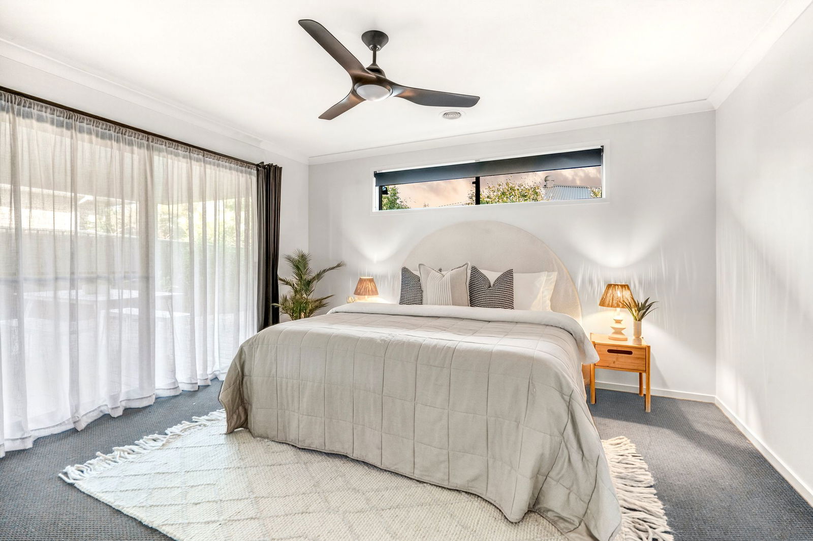 Master Suite – Private large master bedroom perfectly placed at the rear of the home with a large walk in robe and immaculately presented ensuite bathroom, carpet, curtains, ceiling fan and sliding door directly onto the outdoor area