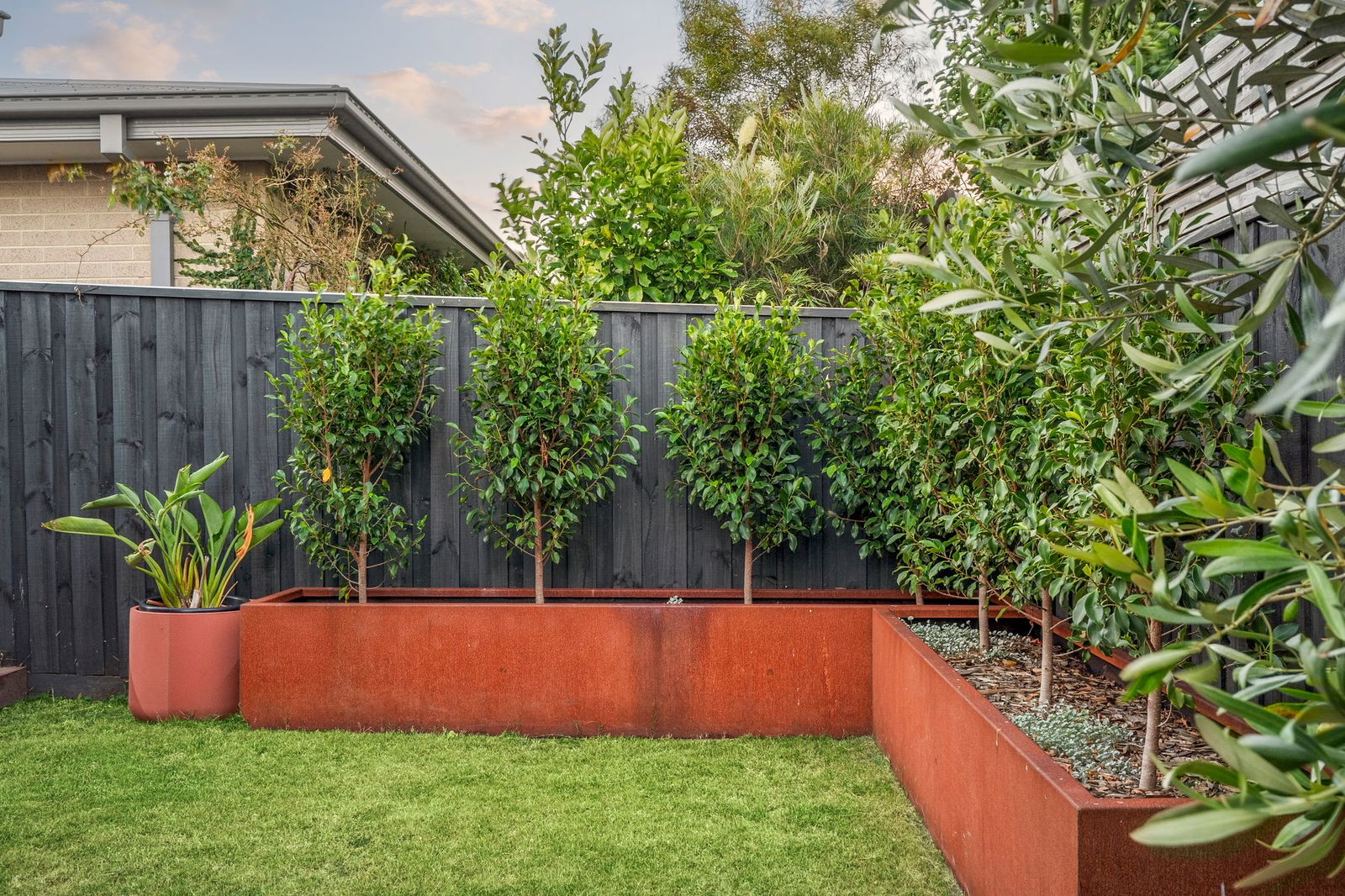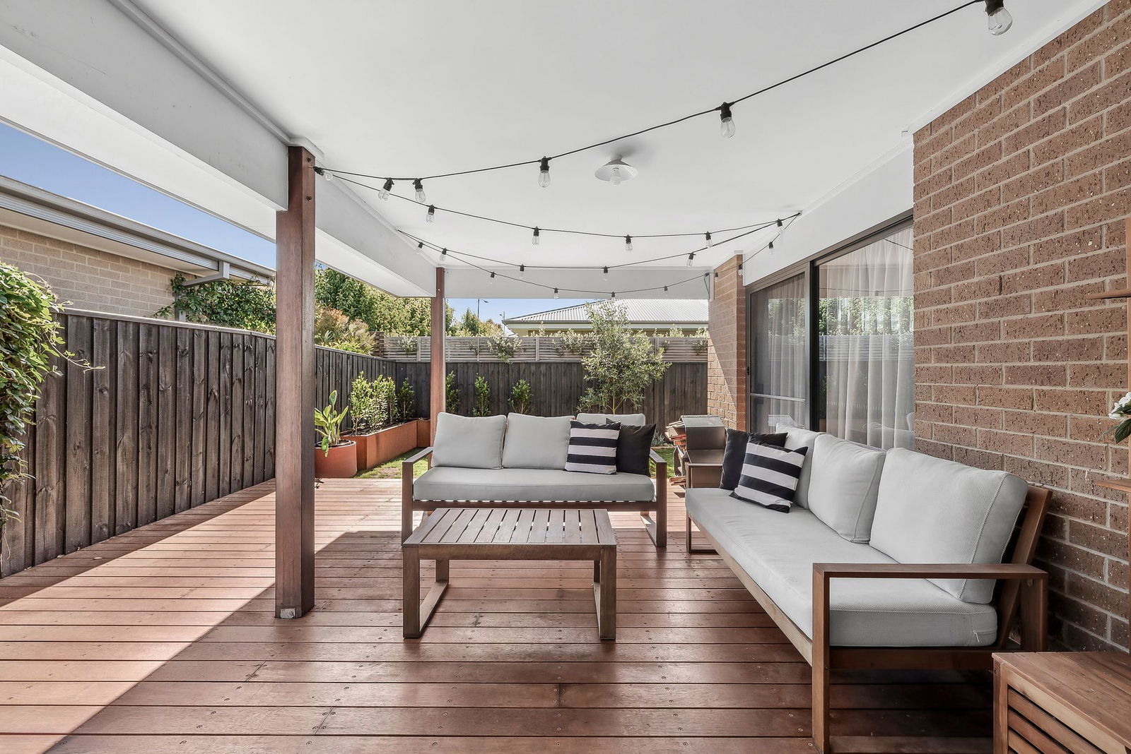 Outdoors – Secure back yard bordered by established trees enjoying lush lawns and a fabulous undercover alfresco deck for entertaining and relaxation, raised garden beds, double lock up garage with dual access, outdoor lights, 448 sqm allotment (approx.)