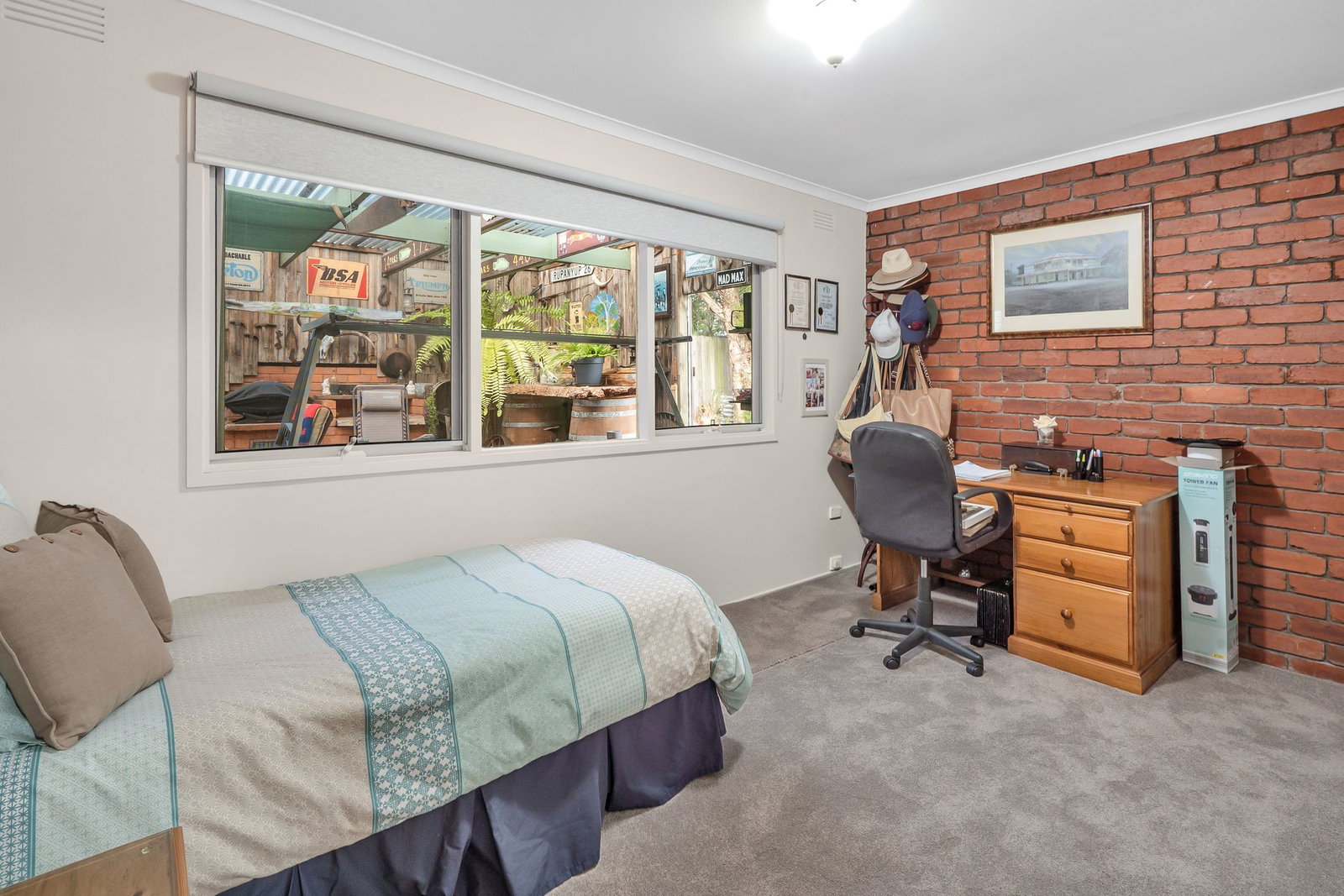 Additional Bedrooms: Two, both sitting either side of the main bathroom and concealed within a private accommodation wing. Featuring carpet underfoot, built-in robes, a linen cupboard, feature exposed brick wall, central ceiling-mounted light, and a window with roller blind.
